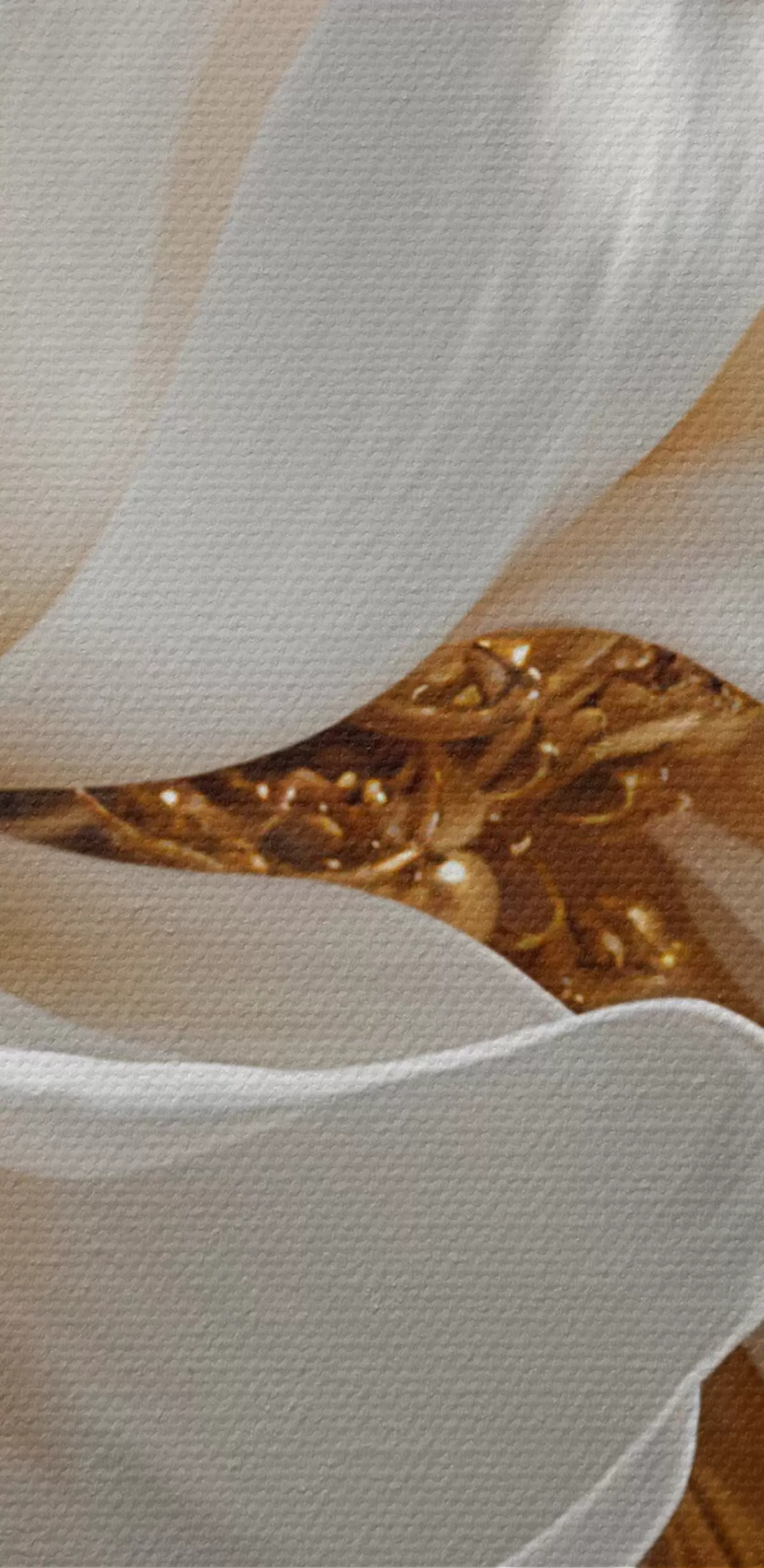 Tableau Gros plan sur une grande fleur blanche aux pétales et étamines délicats au centre du minimalisme. Nr s38762