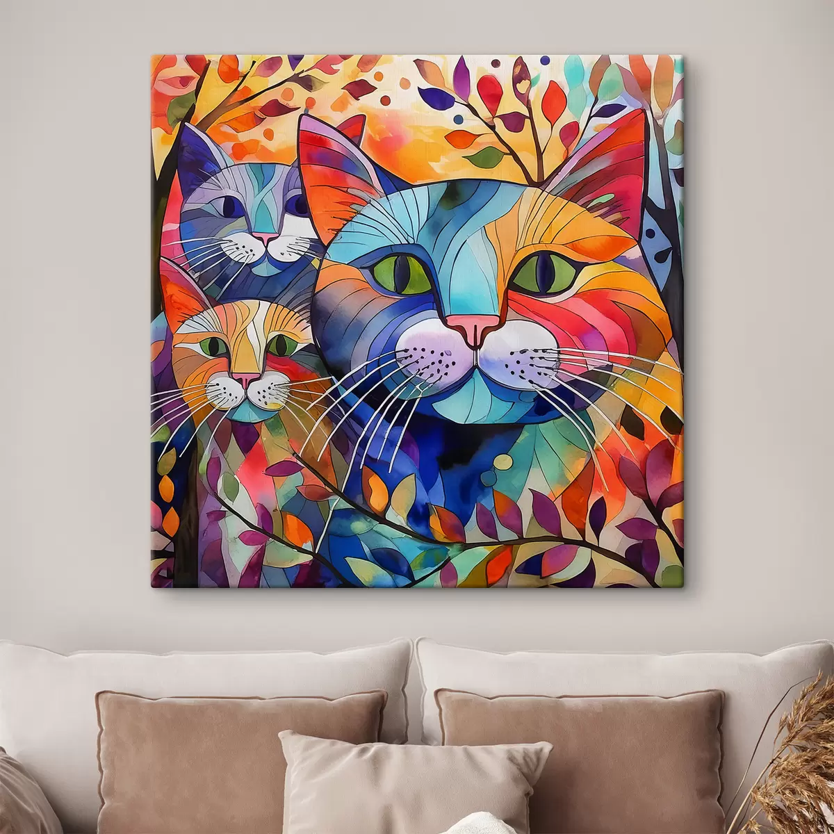 Tableau Abstraction multicolore avec des chats s38814