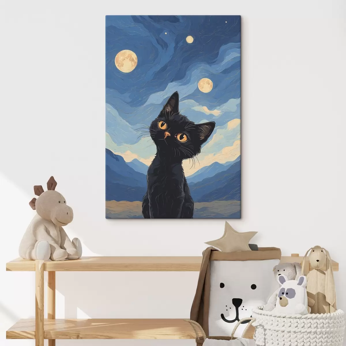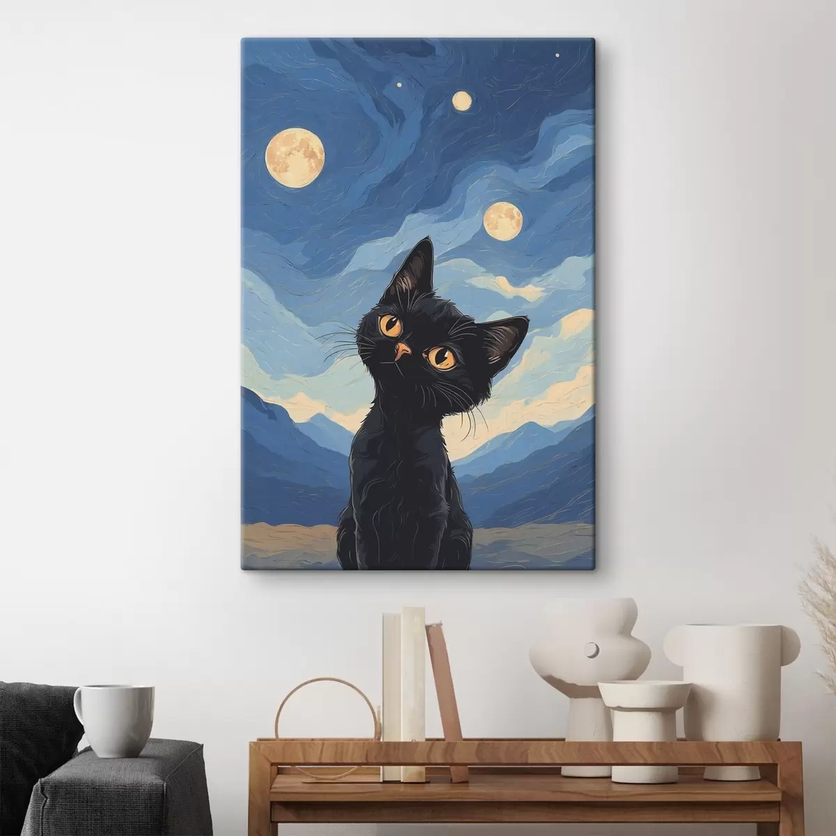 Tableau Chat curieux sous un ciel étoilé Nr s38860