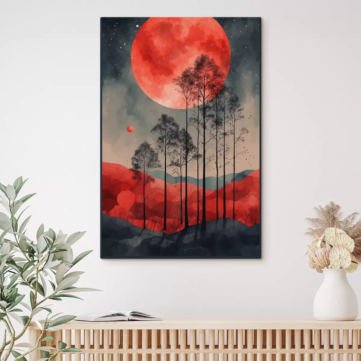 Tableau Forêt éclairée par la lune dans des teintes vibrantes s38862