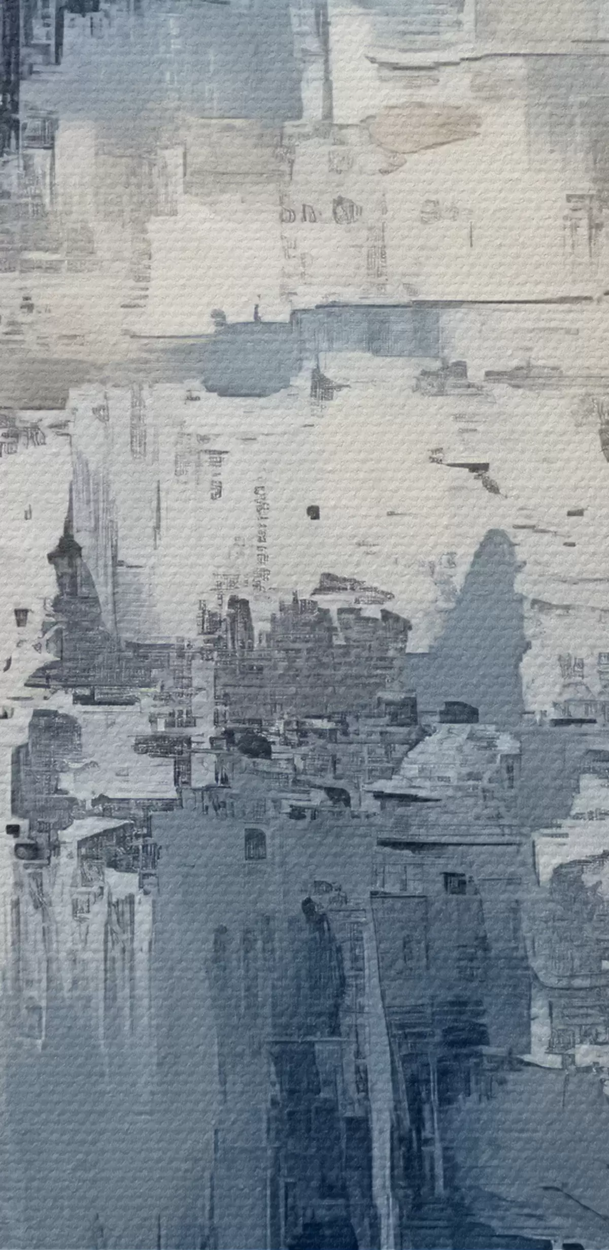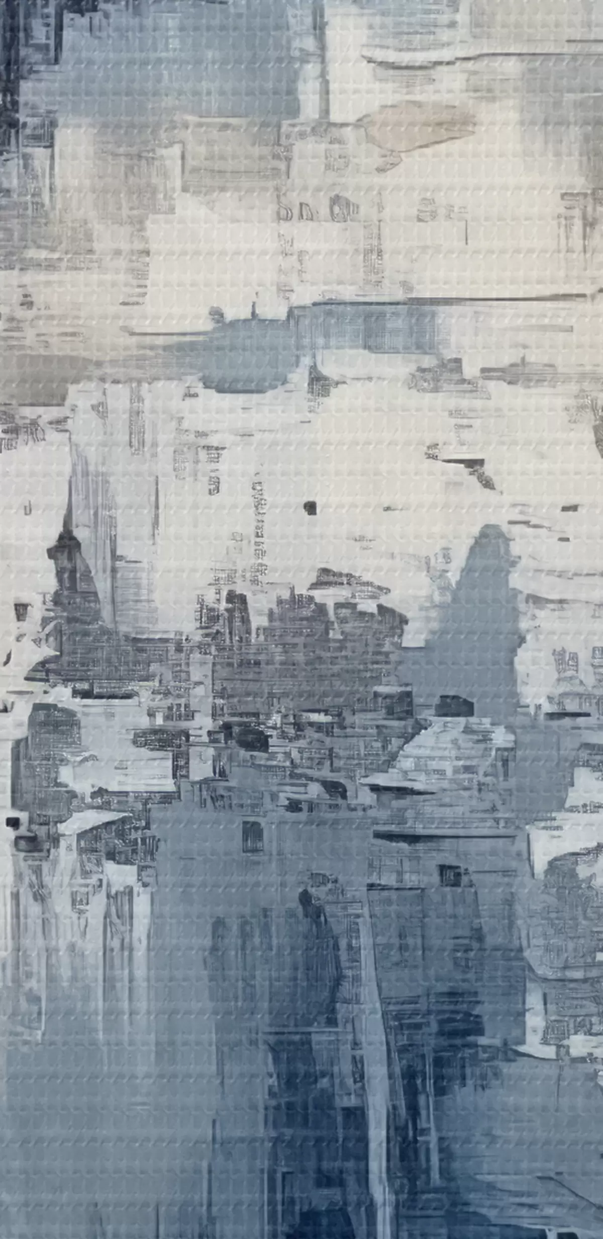Tableau Peinture à l'huile abstraite minimaliste, frottée, géométrique, tache, couleur bleu et blanc s38906