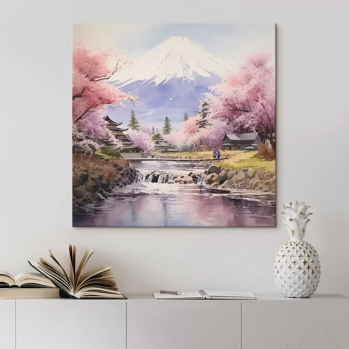 Tableau Cerisiers en fleurs au bord de la rivière du Mont Fuji Nr s38948