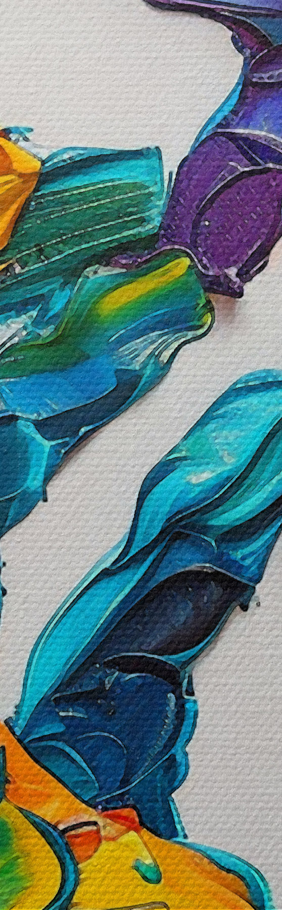 Tableau Mains de peinture à l'huile d'empâtement abstraites colorées avec des coups de pinceau vibrants de peinture bleue, orange, jaune et rouge Nr s38955
