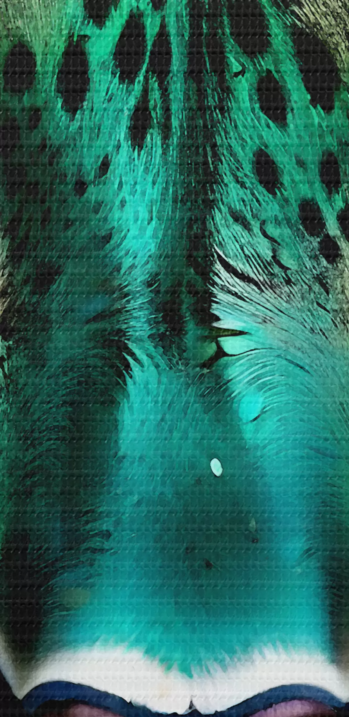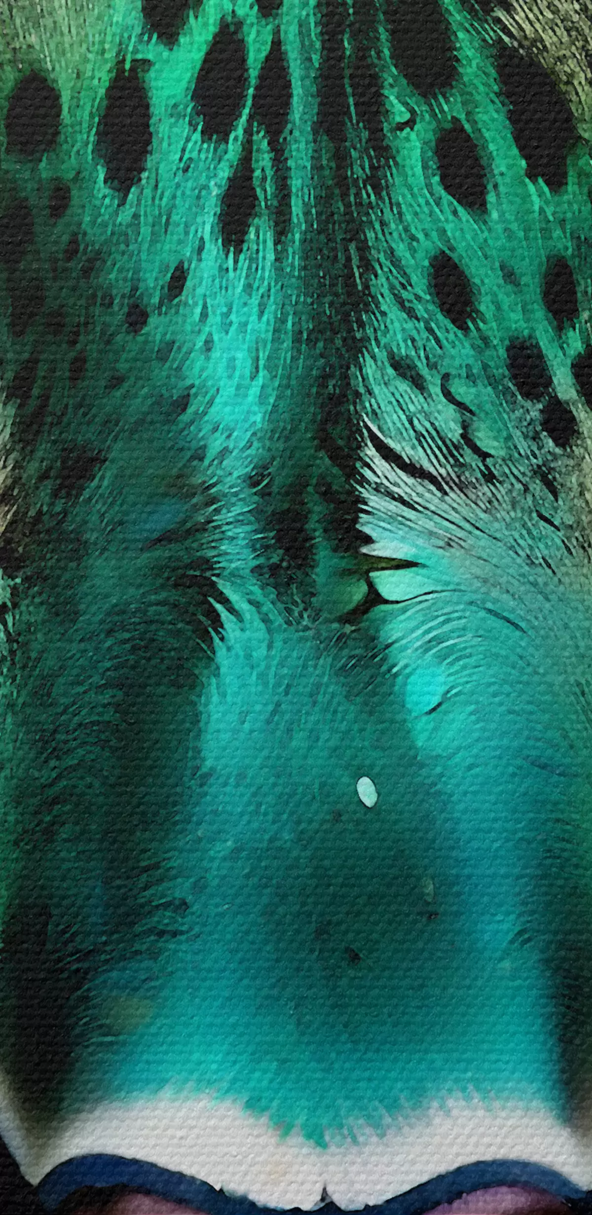 Tableau Un portrait en gros plan d'un féroce léopard aux yeux verts avec une fourrure tachetée de turquoise et de noir éclatant Nr s38979