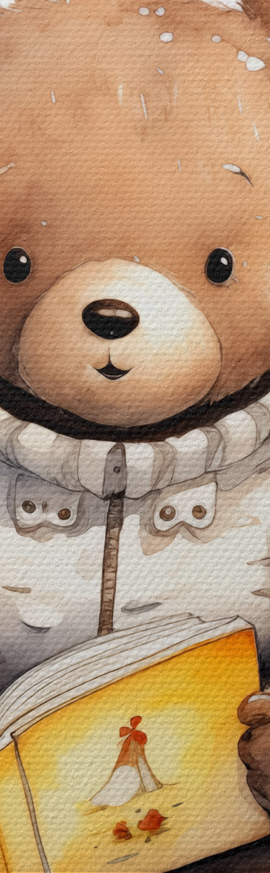 Tableau Ourson brun dans un pull lit un livre entouré de papillons aquarelles Nr s39025