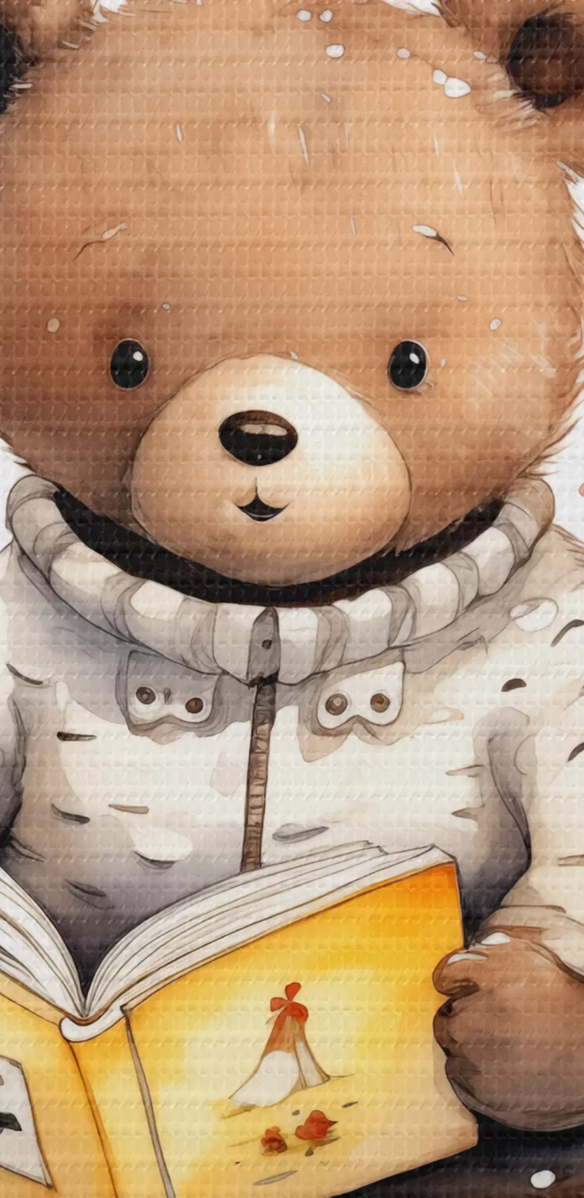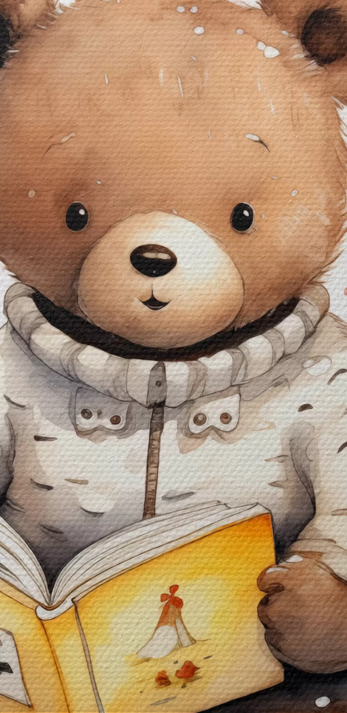 Tableau Ourson brun dans un pull lit un livre entouré de papillons aquarelles Nr s39025