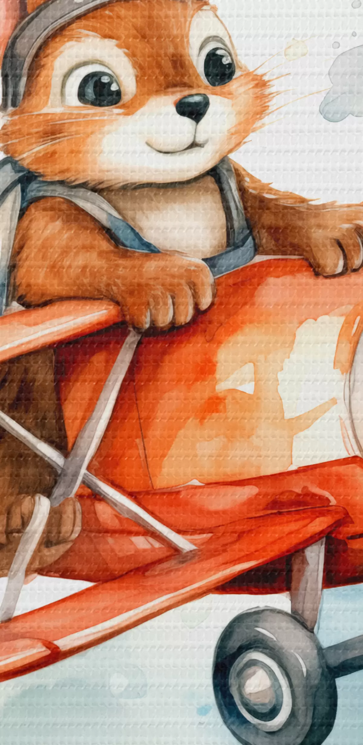 Tableau Bébé écureuil vole dans une aquarelle d'illustration pour enfants d'avion rouge Nr s39116