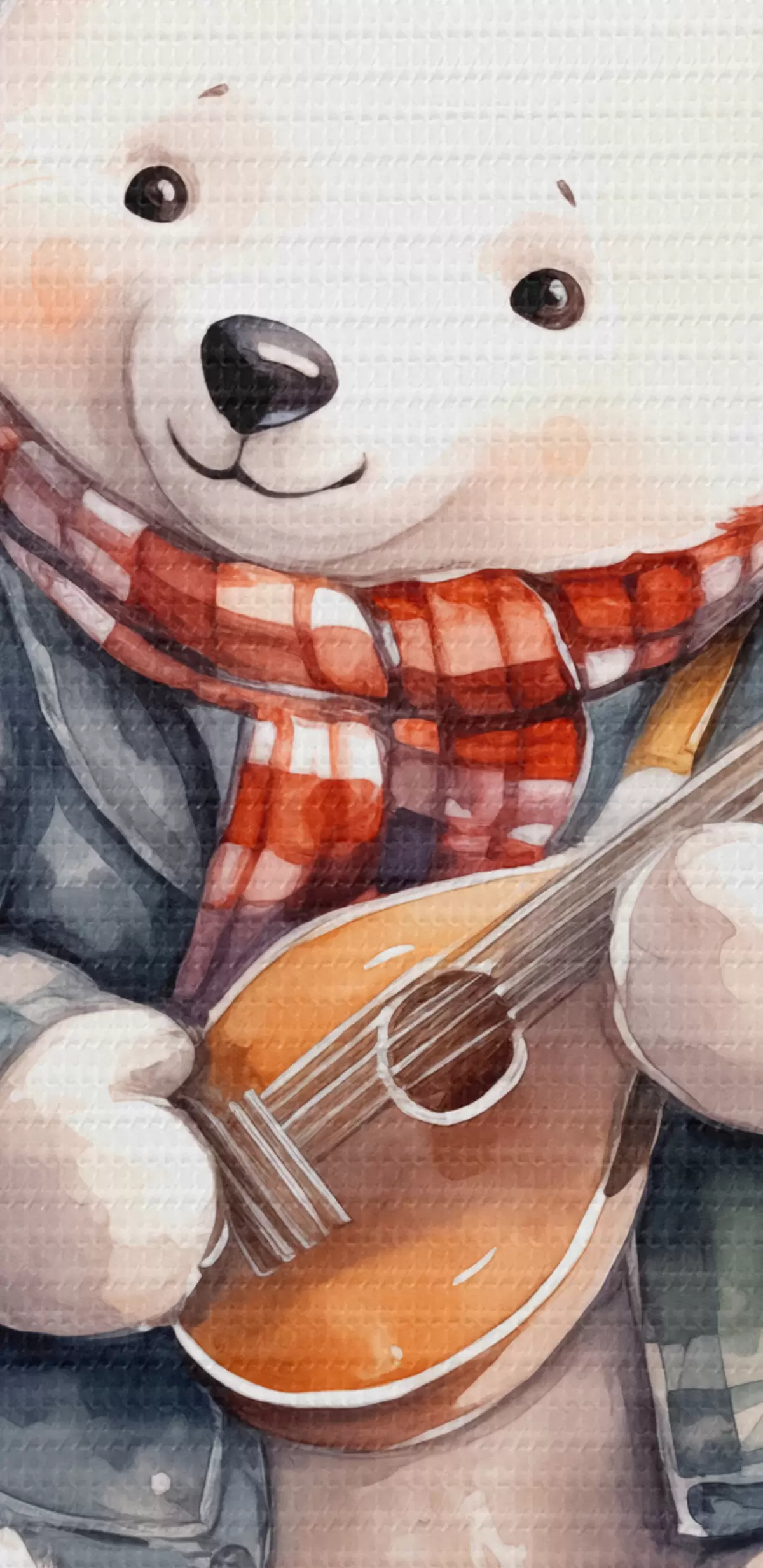 Tableau Musicien d'ours polaire dans un costume à carreaux bleu et une écharpe rouge joue de la guitare illustration aquarelle pour enfants Nr s39120