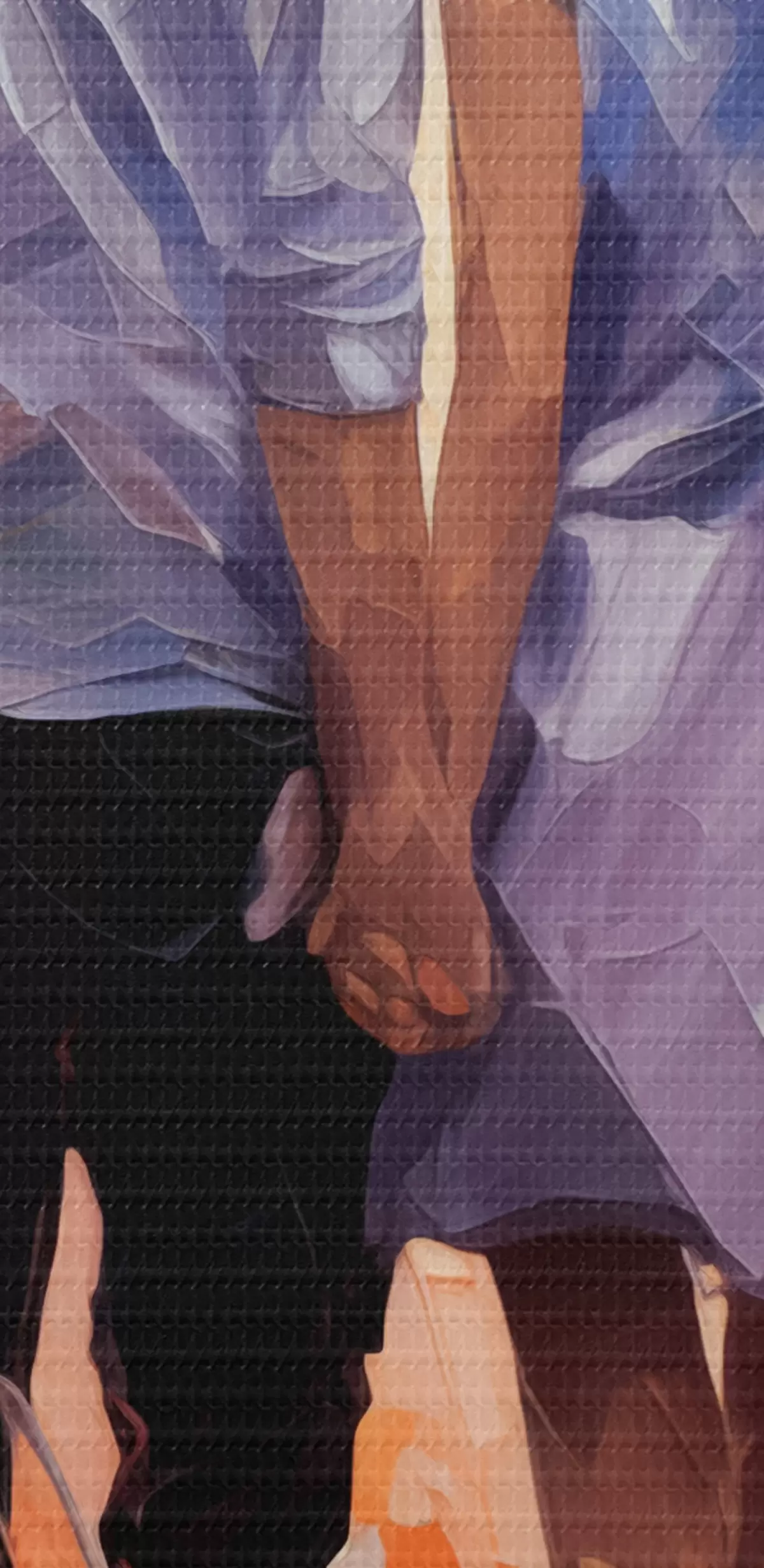 Trois types de matériaux peuvent être commandés : Economic Canvas - matériau dense et durable pour l'impression numérique, identique à la toile de peintre, surface imperméable, reproduction réaliste des détails, matériau à grain moyen. Premium Canvas - la texture ressemble à celle d'une toile de peintre (petits fils entrelacés). Reproduction douce et détaillée de l'image sur une surface mate. Eco-Premium - tissu 100 % coton de haute qualité. Grâce aux fibres naturelles de coton, le matériau est durable et résistant à l'usure. Excellente reproduction des couleurs et des détails.