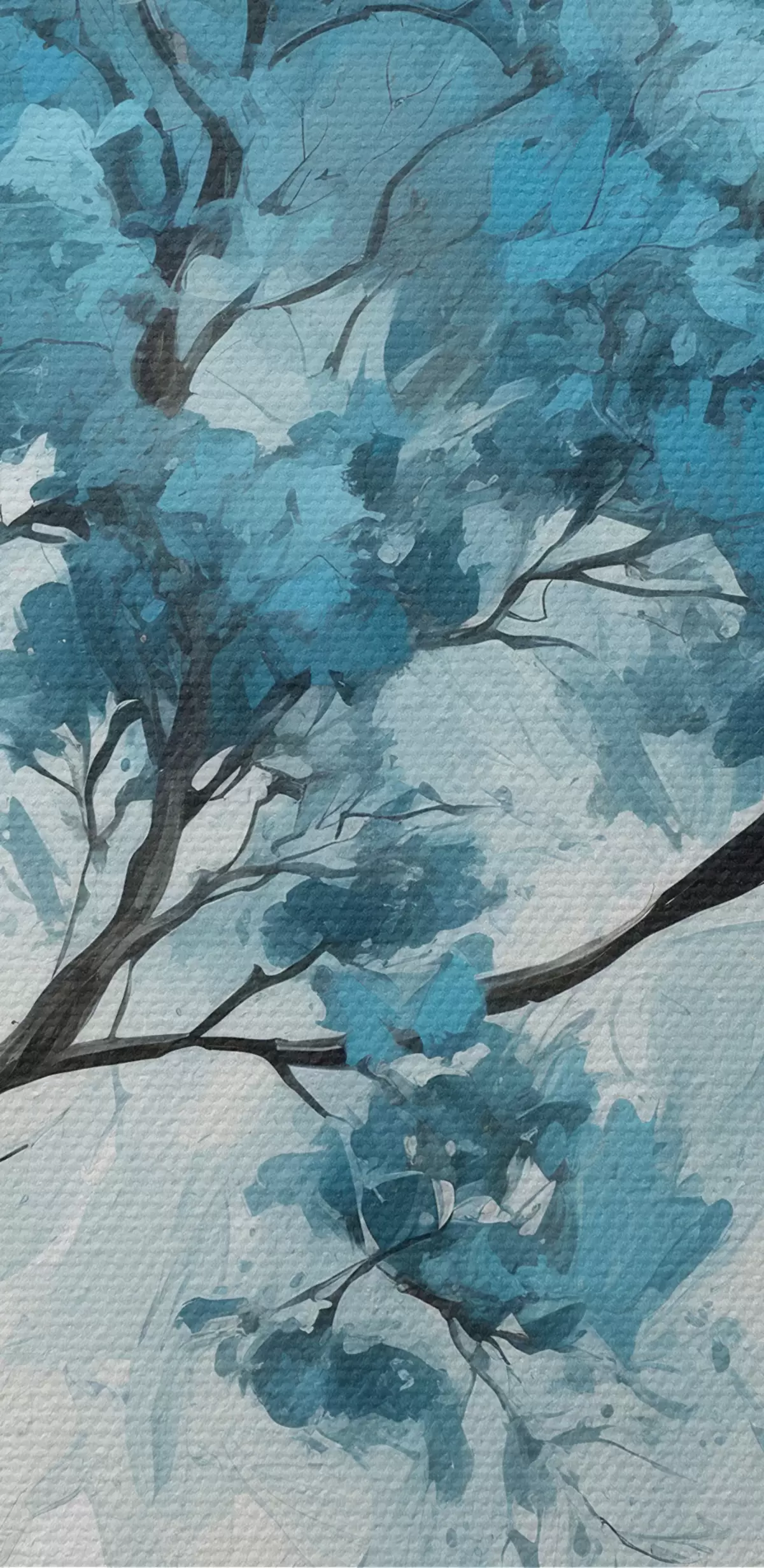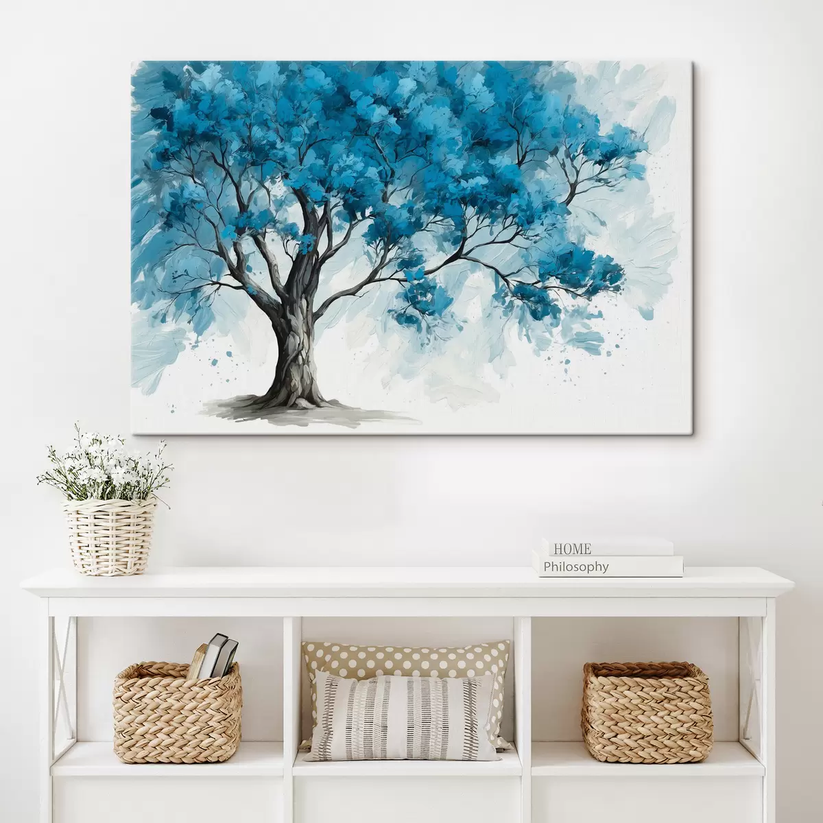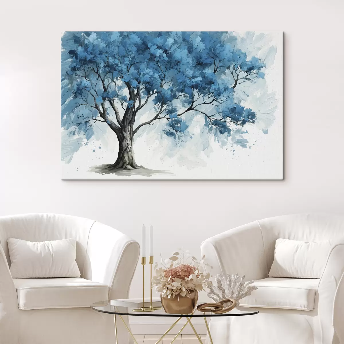 Tableau Arbre à feuilles bleues sur fond blanc Nr s39153