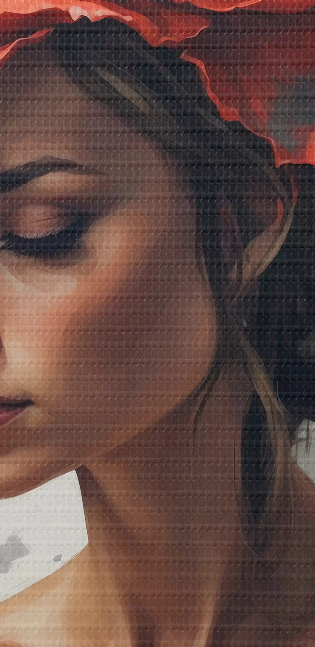 Trois types de matériaux peuvent être commandés : Economic Canvas - matériau dense et durable pour l'impression numérique, identique à la toile de peintre, surface imperméable, reproduction réaliste des détails, matériau à grain moyen. Premium Canvas - la texture ressemble à celle d'une toile de peintre (petits fils entrelacés). Reproduction douce et détaillée de l'image sur une surface mate. Eco-Premium - tissu 100 % coton de haute qualité. Grâce aux fibres naturelles de coton, le matériau est durable et résistant à l'usure. Excellente reproduction des couleurs et des détails.