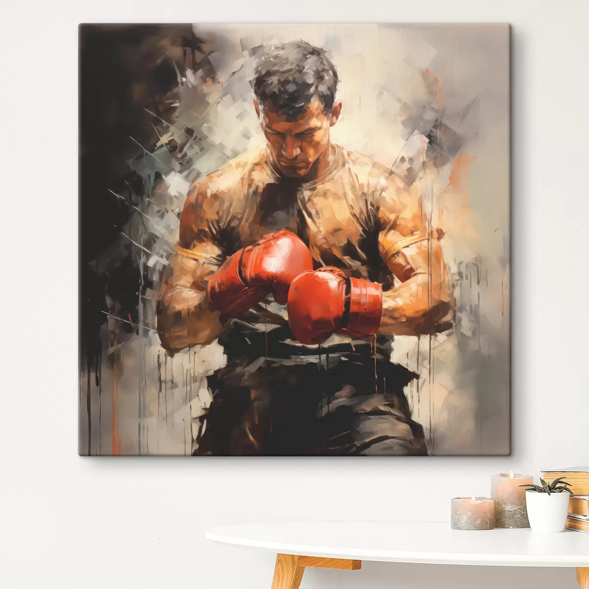 Tableau Boxer en peinture à l’huile de gants rouges Nr s39180