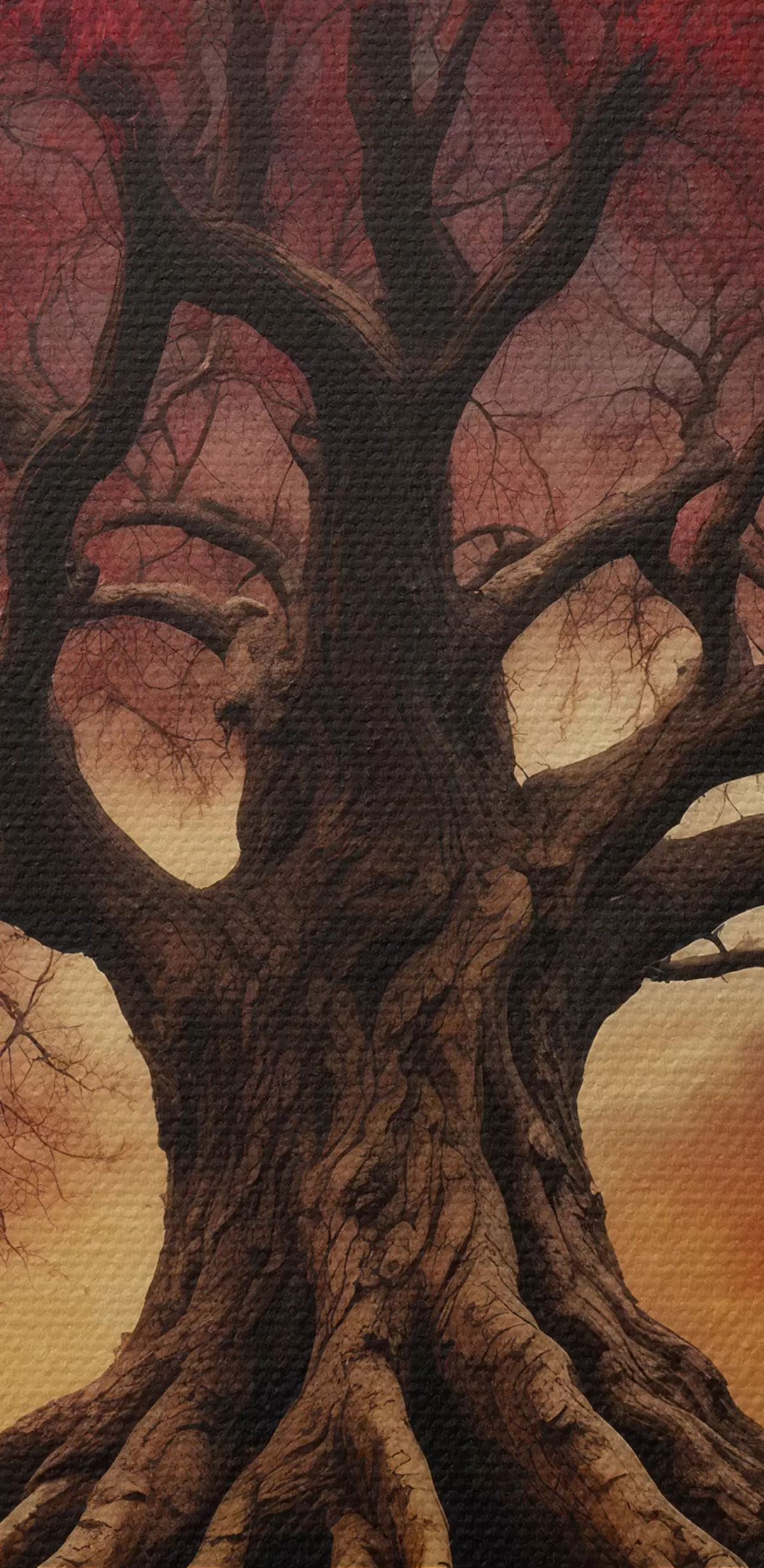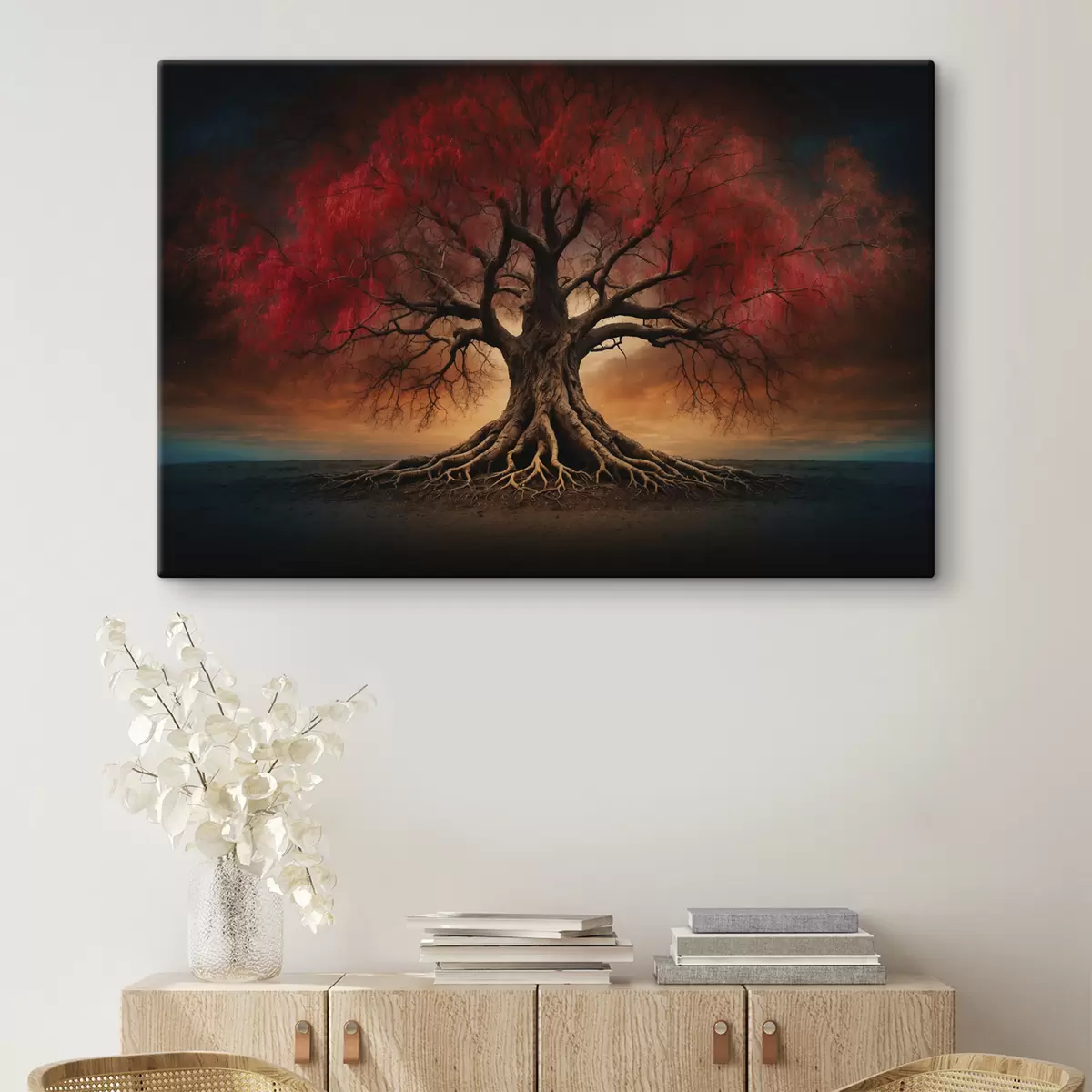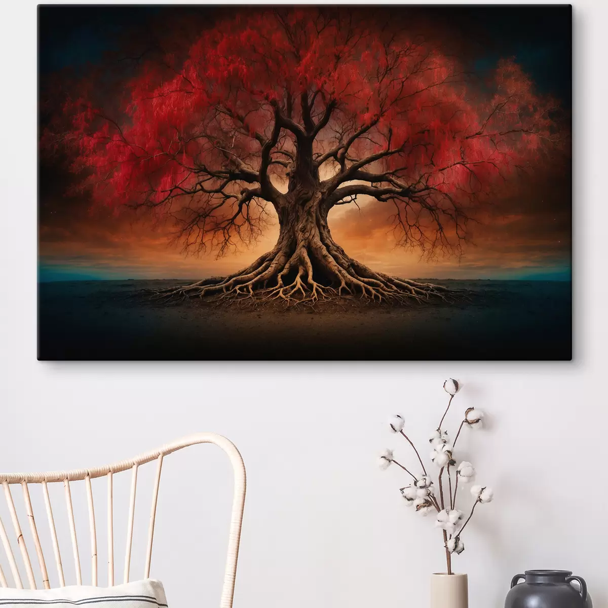 Tableau Arbre enraciné au milieu d'un champ vide s39614