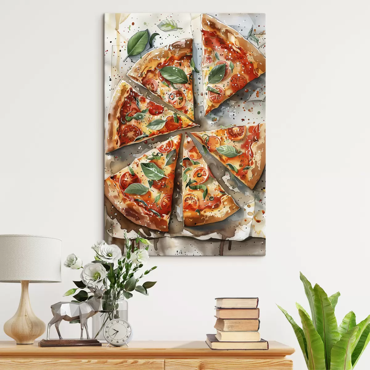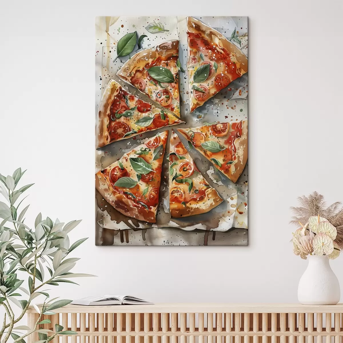 Tableau Délicieuse pizza italienne, art culinaire à l'aquarelle, margarita, tomates Nr s39703