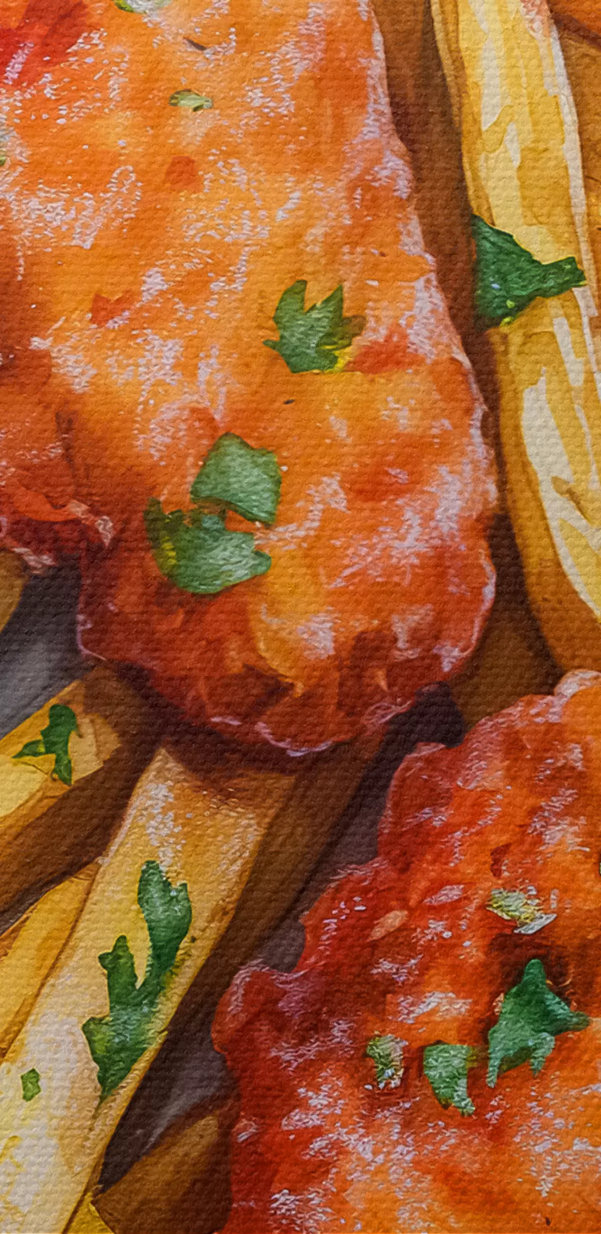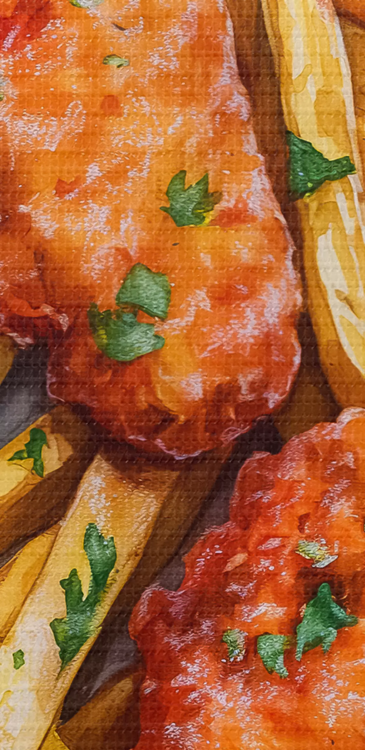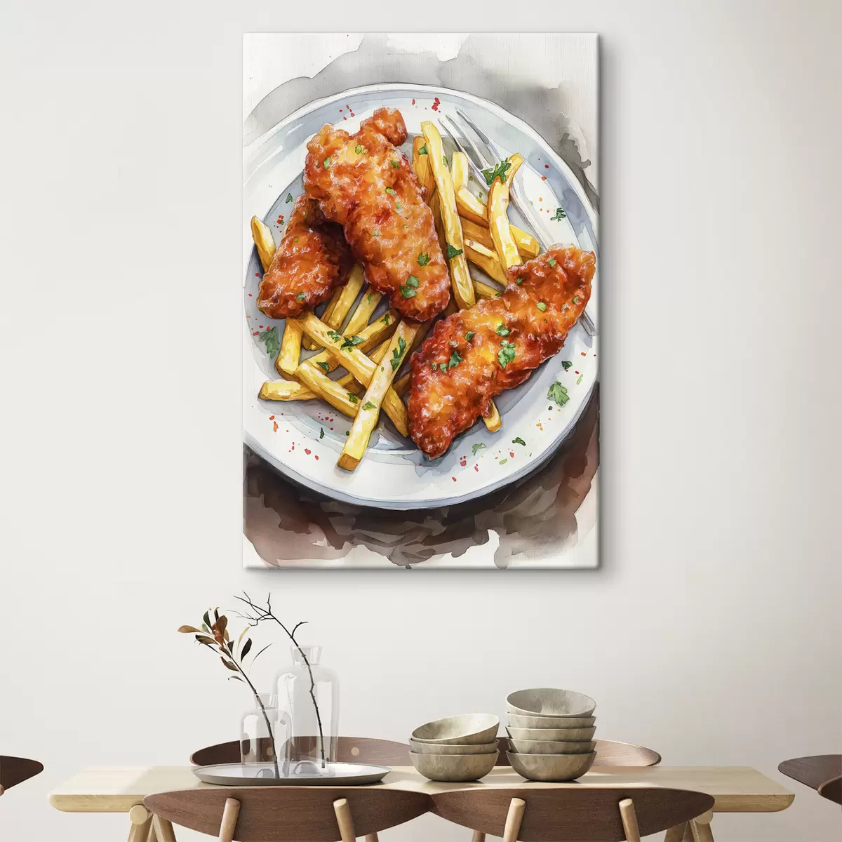 Tableau Art culinaire à l'aquarelle, frites au poulet rôti, délicieux Nr s39708
