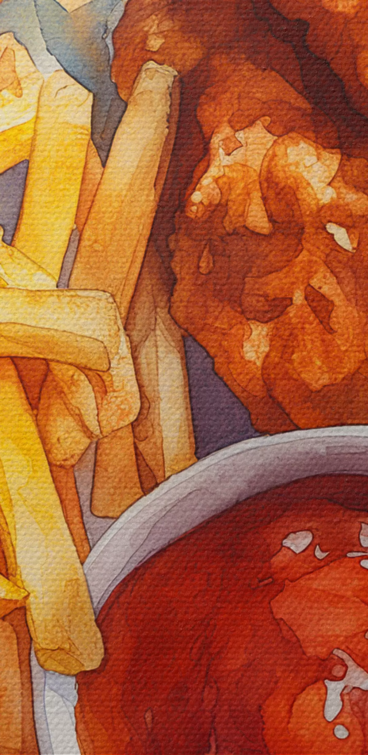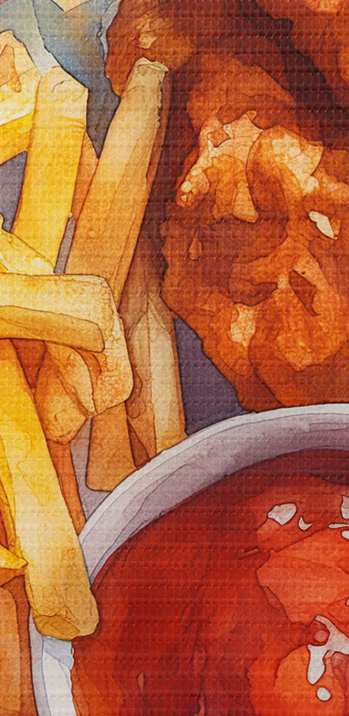 Tableau Cuisine de rue à l'aquarelle, frites au poulet rôti, délicieuse Nr s39709