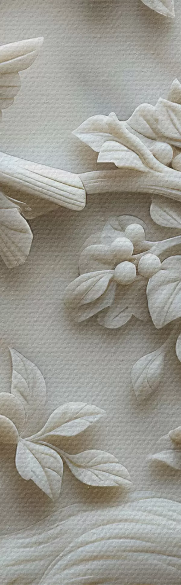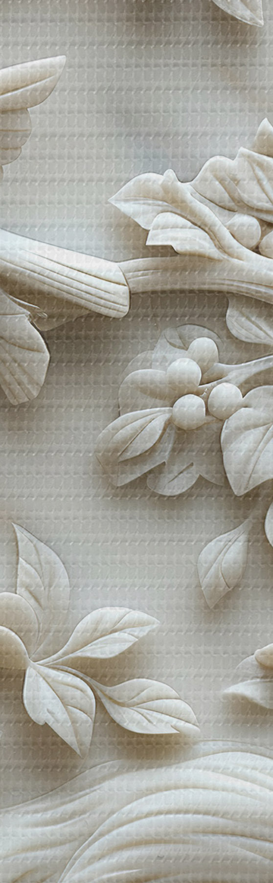 Tableau Jardin en marbre blanc avec bas-relief d'oiseaux et de fleurs  s39728