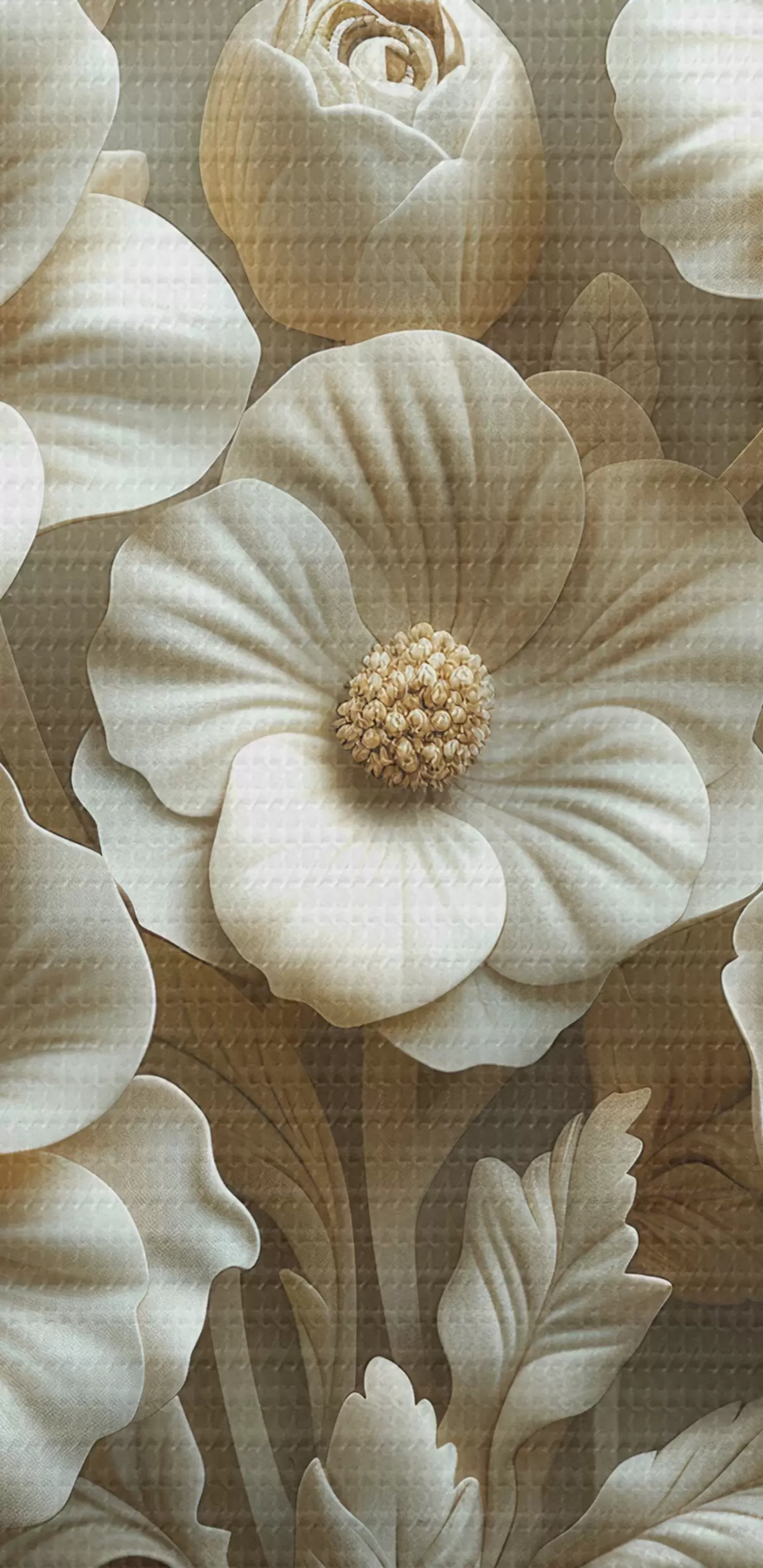 Tableau Fleurs en bas-relief blanc 3d avec sur fond de marbre avec un cadre s39739