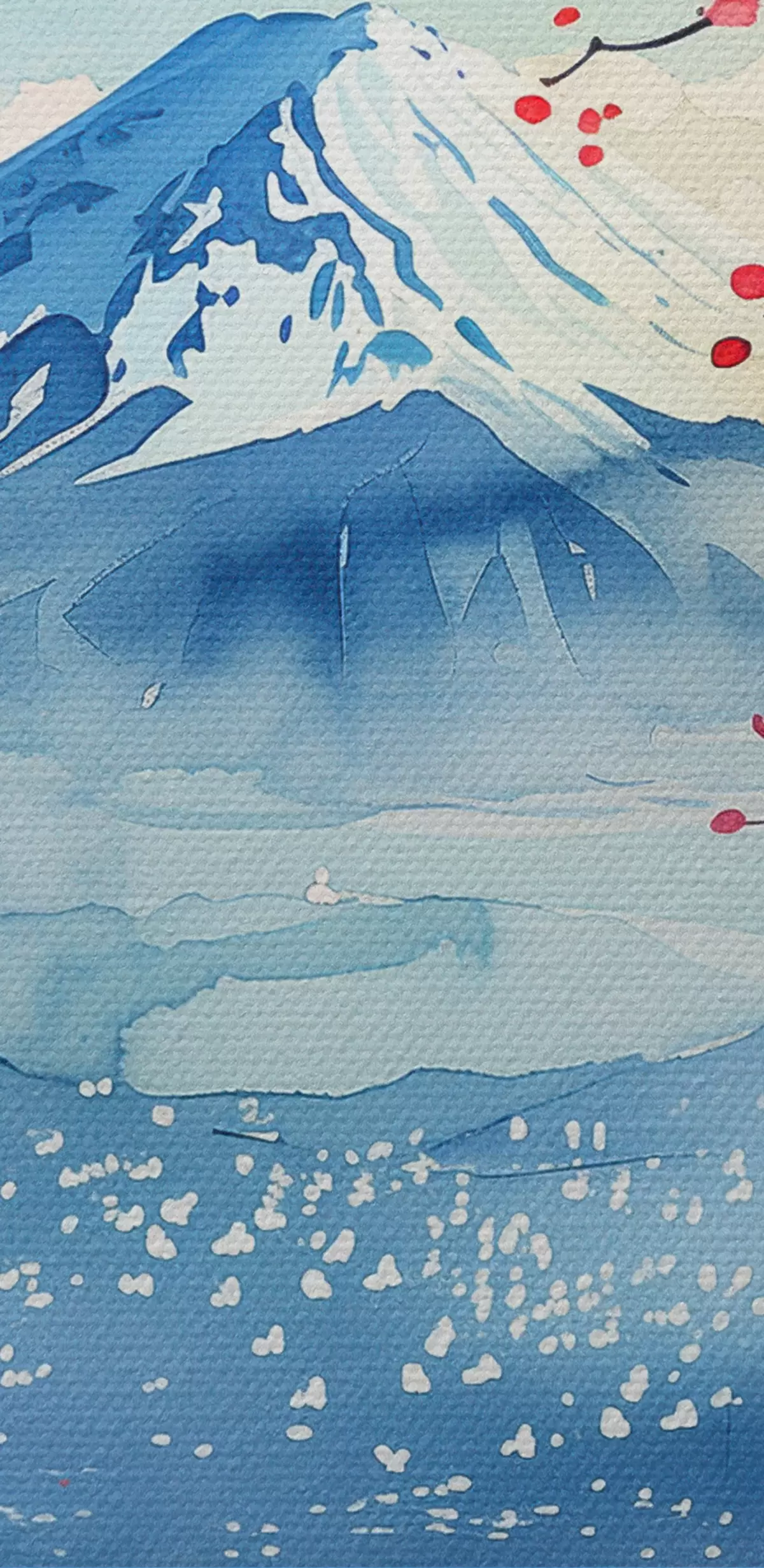 Tableau Paysage de montagne Fuji, nature orientale, cerisiers, coucher de soleil Nr s39775