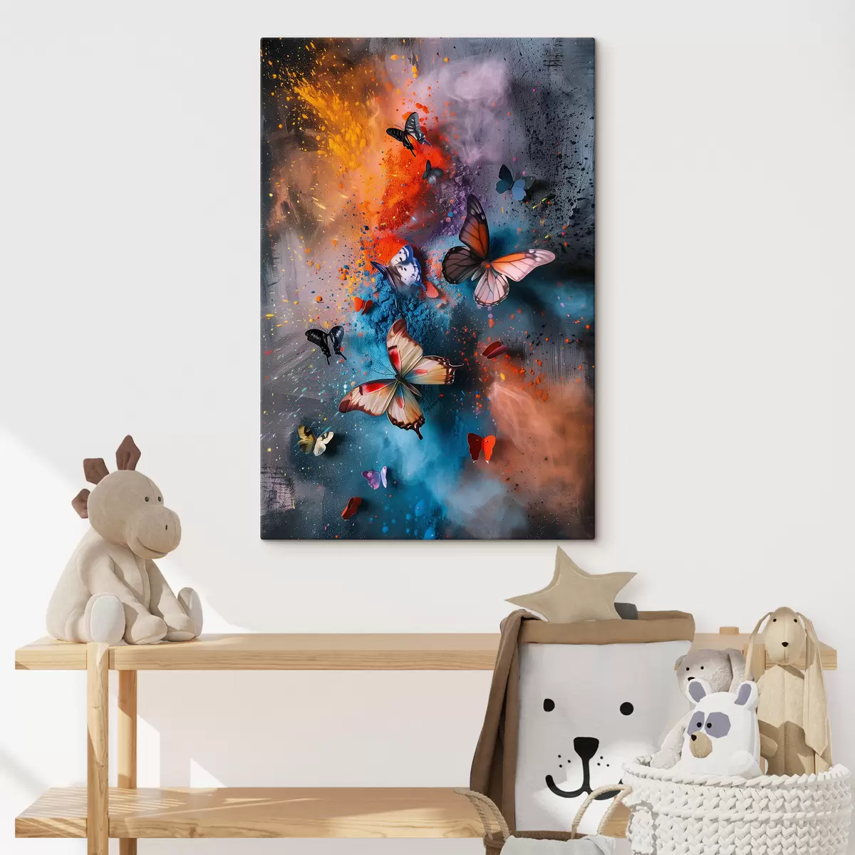 Tableau Papillons sur fond de touches de peinture Nr s39803