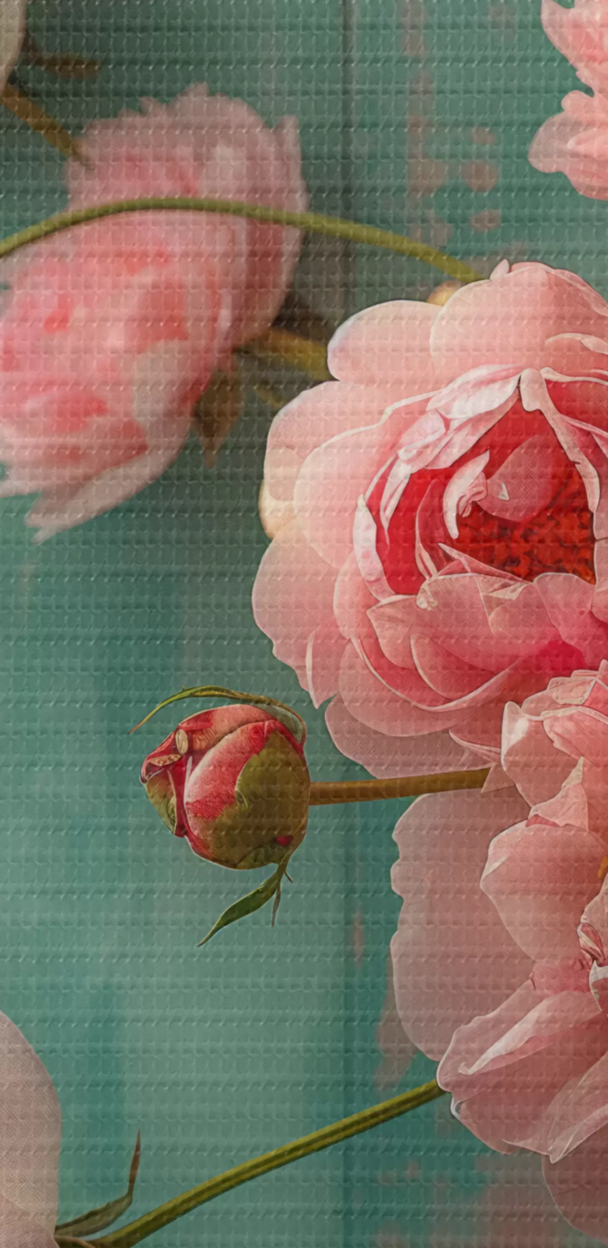 Tableau Fleurs roses, bois, antique s39957