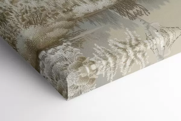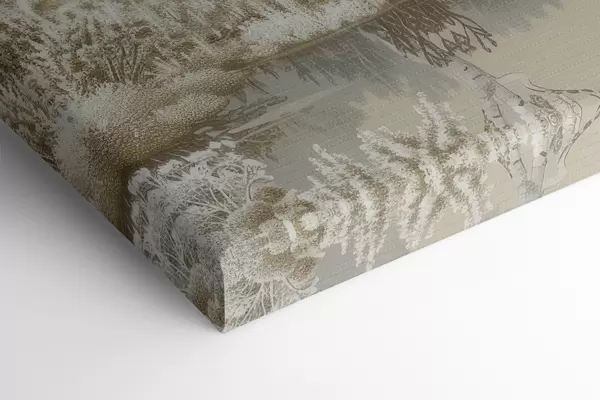 Tableau Magnifique paysage forestier, étang et arbres, couleurs beige et blanc s39979