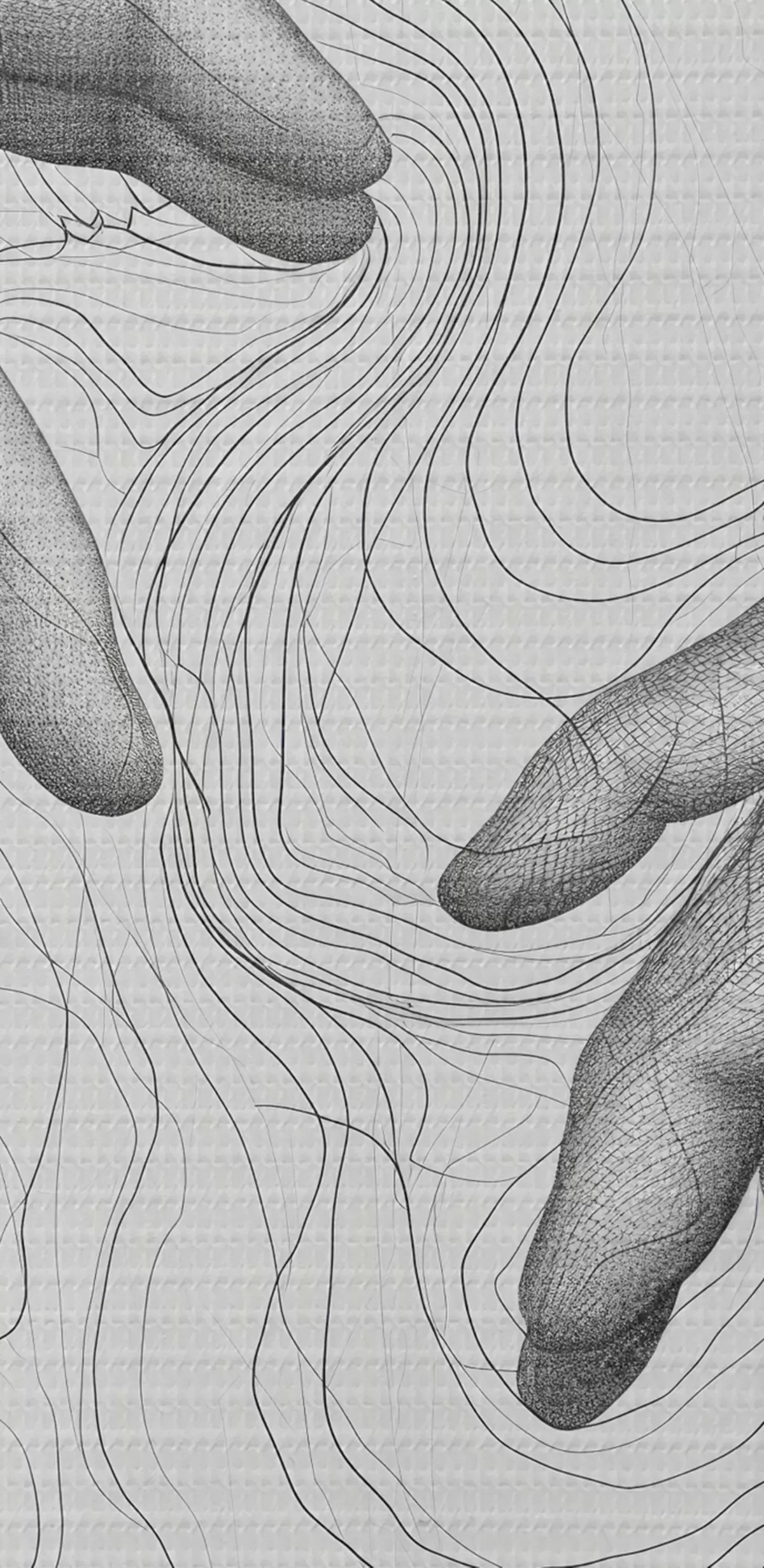 Tableau Mains, abstraction, dessin au trait Nr s39999