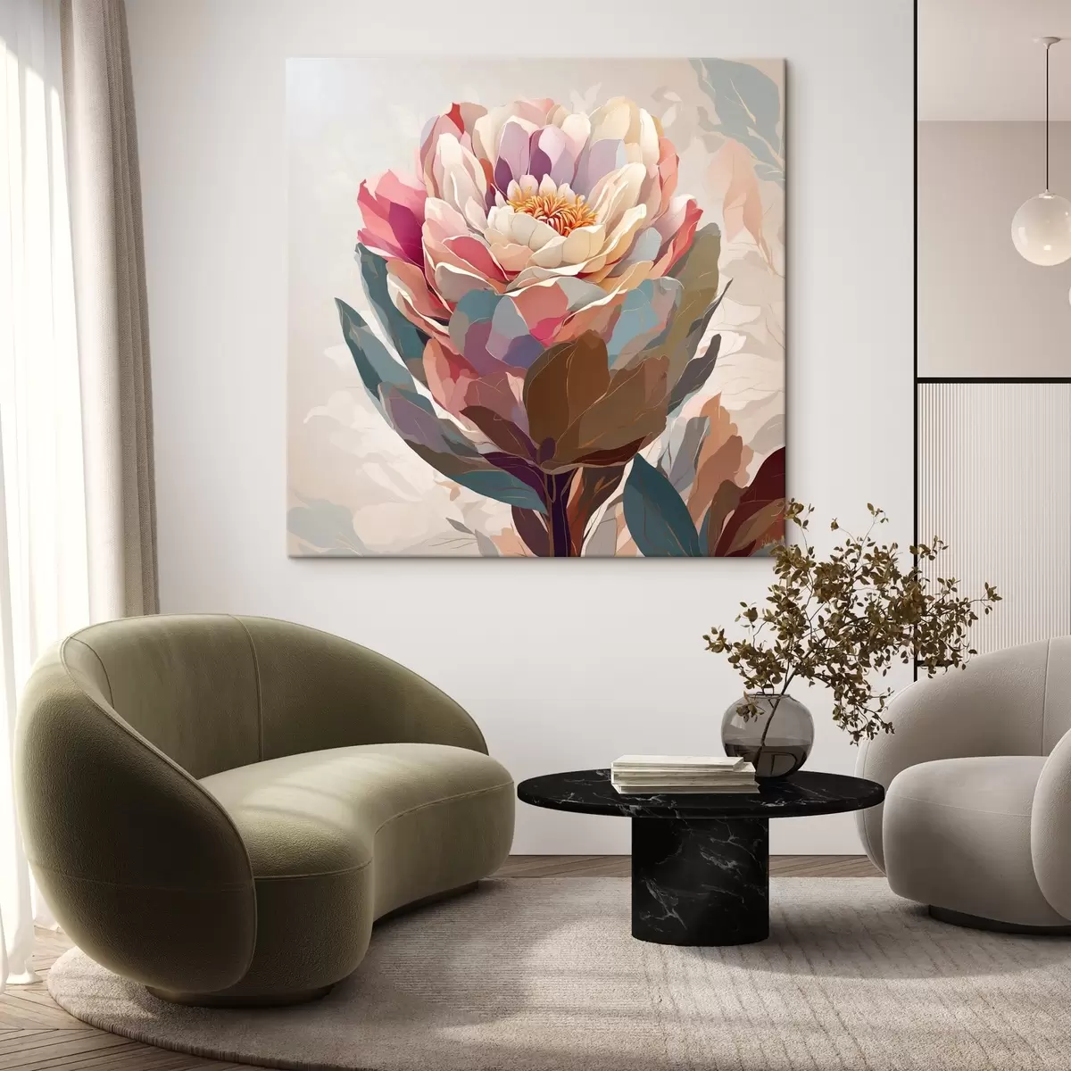 Trois types de matériaux peuvent être commandés : Economic Canvas - matériau dense et durable pour l'impression numérique, identique à la toile de peintre, surface imperméable, reproduction réaliste des détails, matériau à grain moyen. Premium Canvas - la texture ressemble à celle d'une toile de peintre (petits fils entrelacés). Reproduction douce et détaillée de l'image sur une surface mate. Eco-Premium - tissu 100 % coton de haute qualité. Grâce aux fibres naturelles de coton, le matériau est durable et résistant à l'usure. Excellente reproduction des couleurs et des détails.