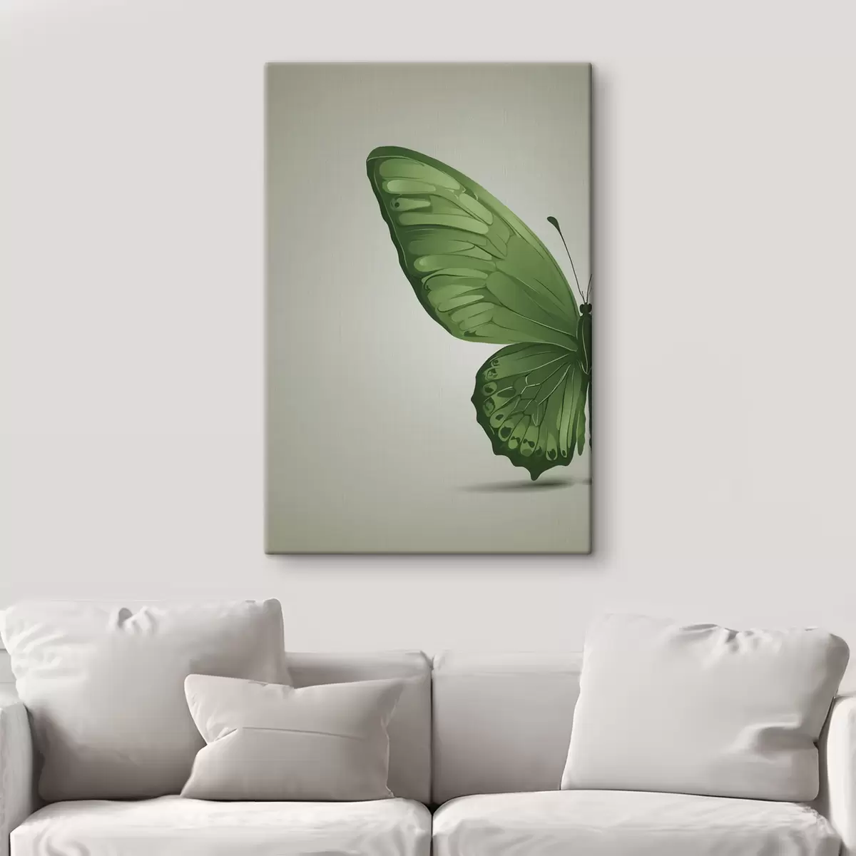 Tableau Aile gauche d'un papillon vert sur fond blanc Nr s40062