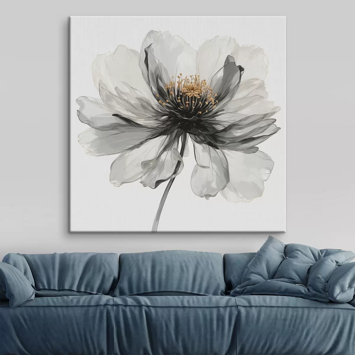 Tableau Fleur noire transparente sur fond blanc s40066