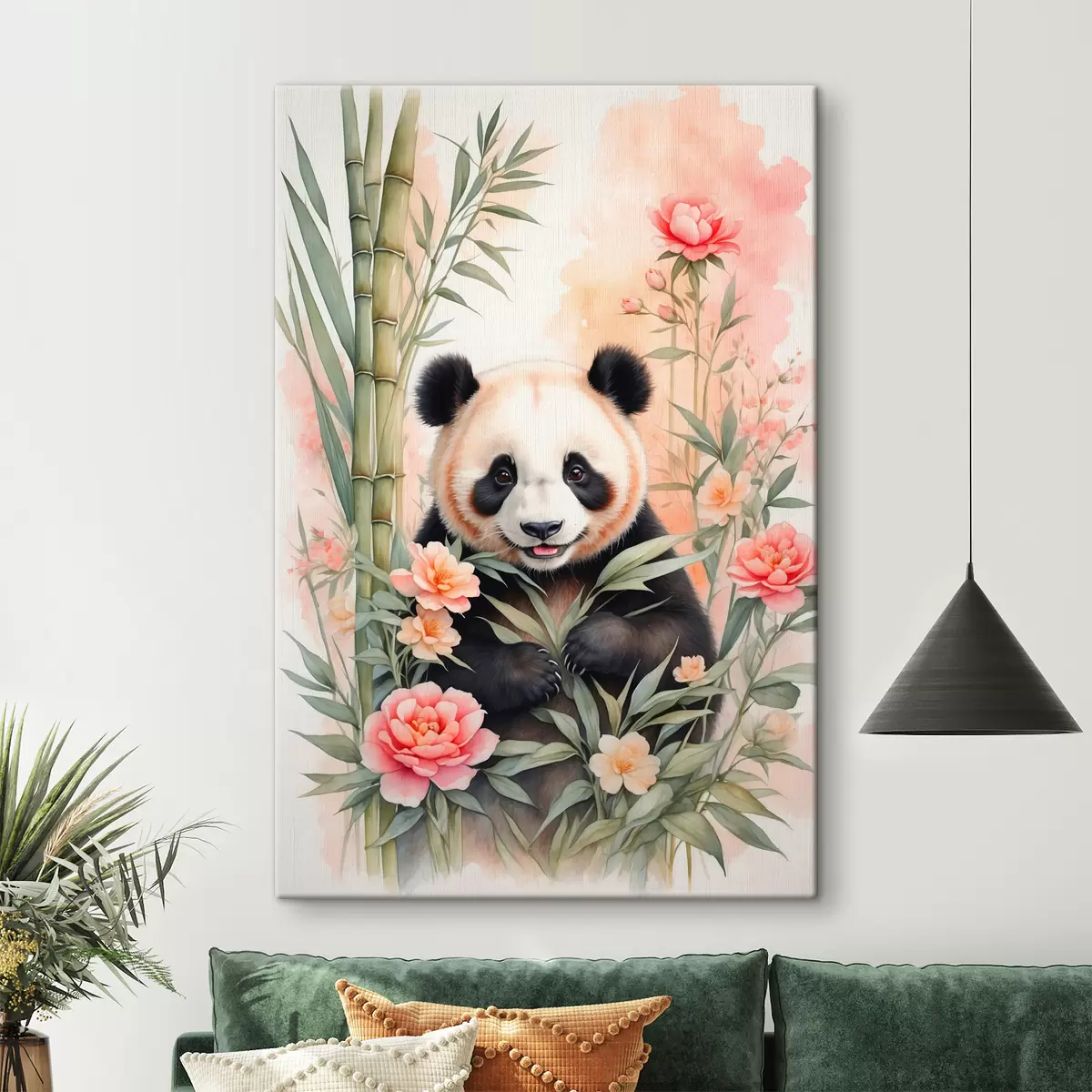Tableau Panda avec des fleurs et du bambou Nr s40125