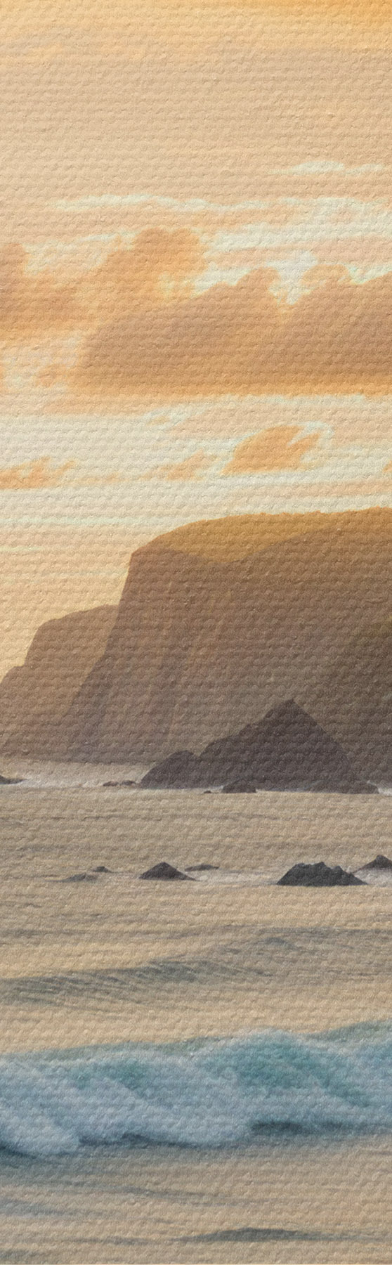 Tableau Un paysage côtier pittoresque avec des falaises spectaculaires, des vagues déferlantes et un ciel de coucher de soleil coloré Nr s40176