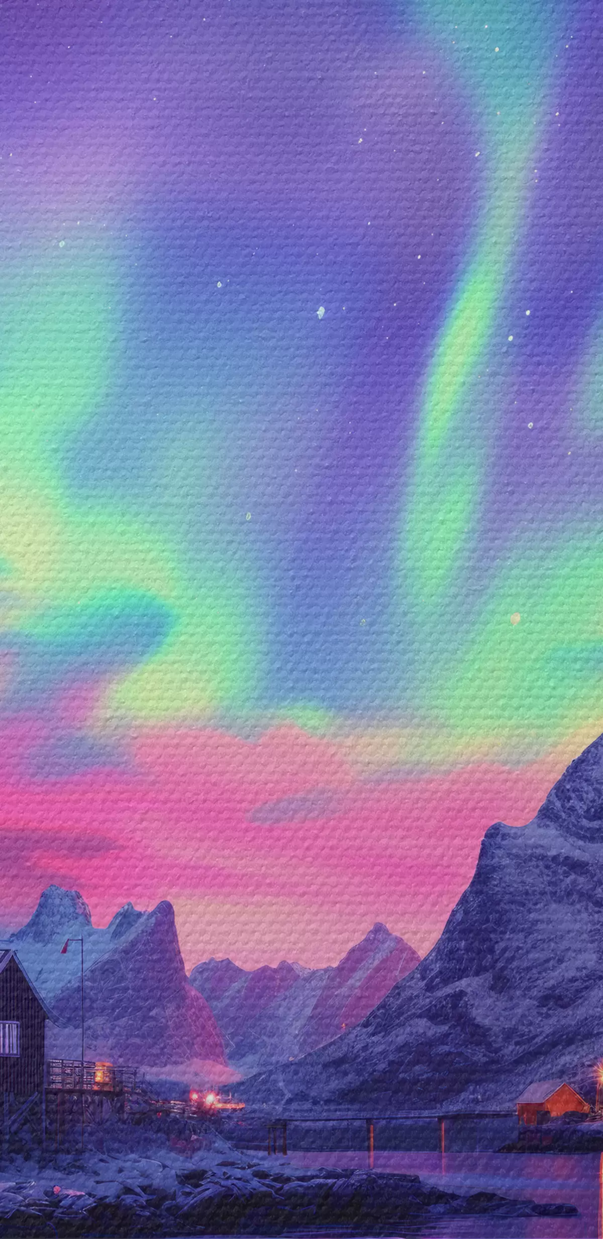 Tableau Lumières nordiques sur les îles Lofoten, Norvège nature, hiver s40298