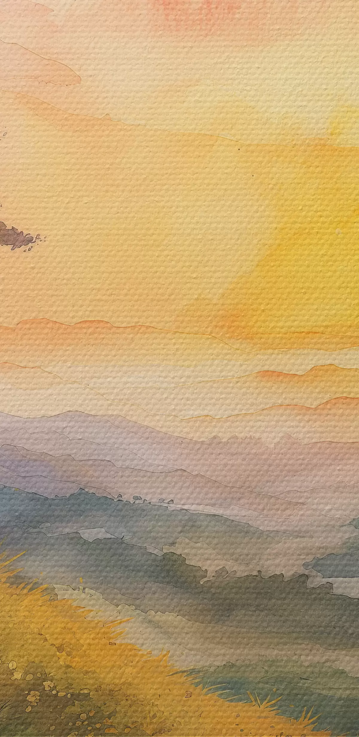 Tableau Prairie avec collines et arbres, fleurs, aquarelle Nr s40303