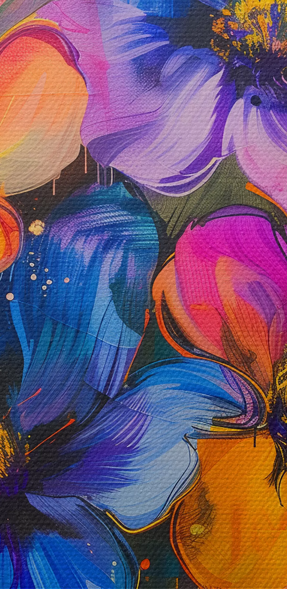 Trois types de matériaux peuvent être commandés : Economic Canvas - matériau dense et durable pour l'impression numérique, identique à la toile de peintre, surface imperméable, reproduction réaliste des détails, matériau à grain moyen. Premium Canvas - la texture ressemble à celle d'une toile de peintre (petits fils entrelacés). Reproduction douce et détaillée de l'image sur une surface mate. Eco-Premium - tissu 100 % coton de haute qualité. Grâce aux fibres naturelles de coton, le matériau est durable et résistant à l'usure. Excellente reproduction des couleurs et des détails.