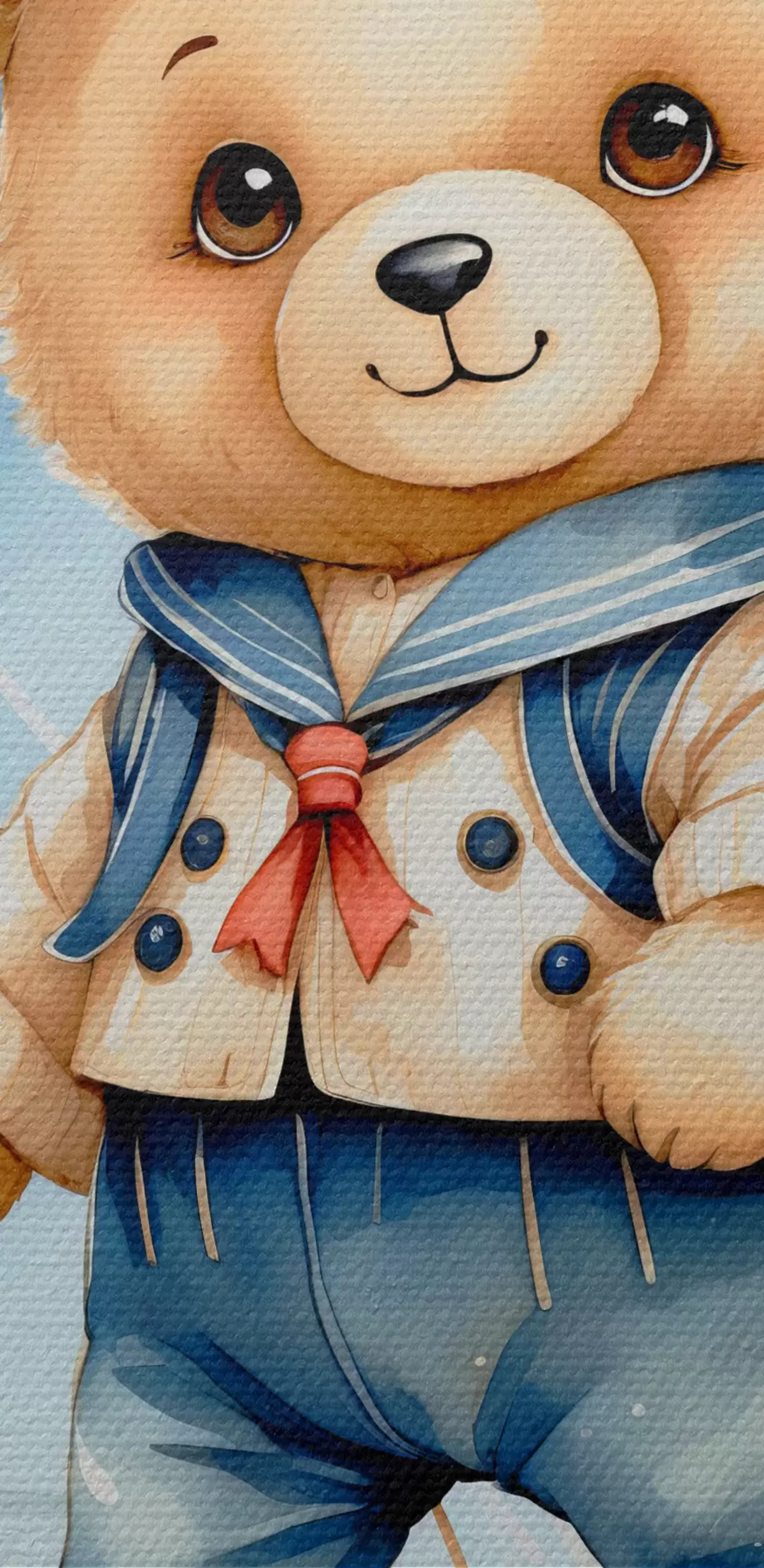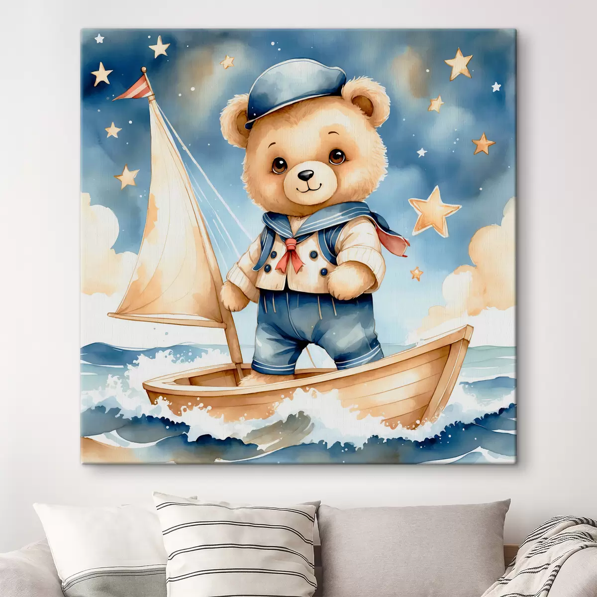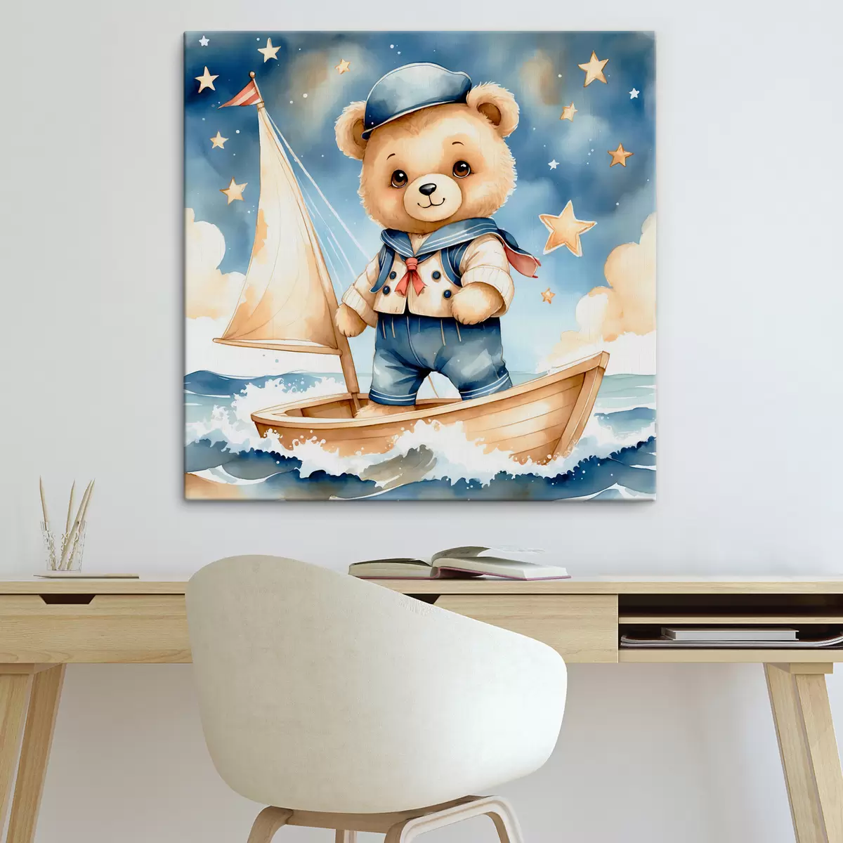 Tableau Ours aquarelle mignon dans un bateau avec des étoiles dans le ciel Nr s40429