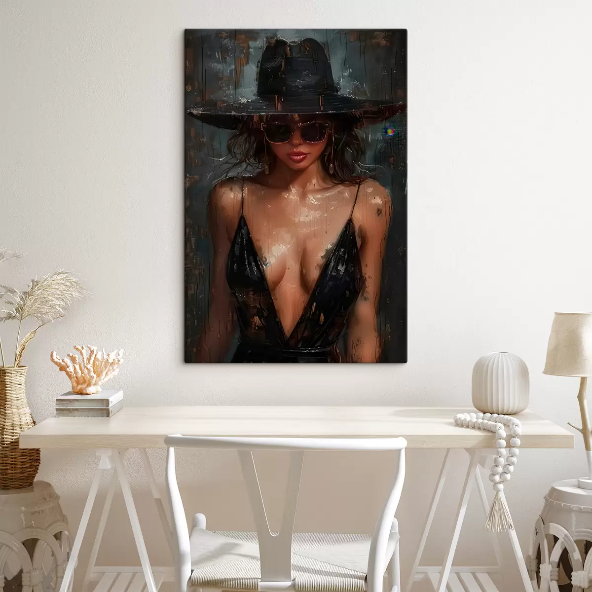 Tableau Fille en robe noire et chapeau noir Nr s40441