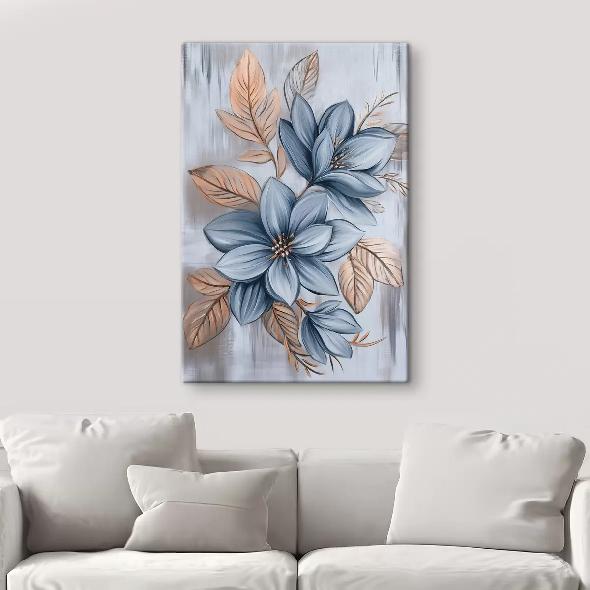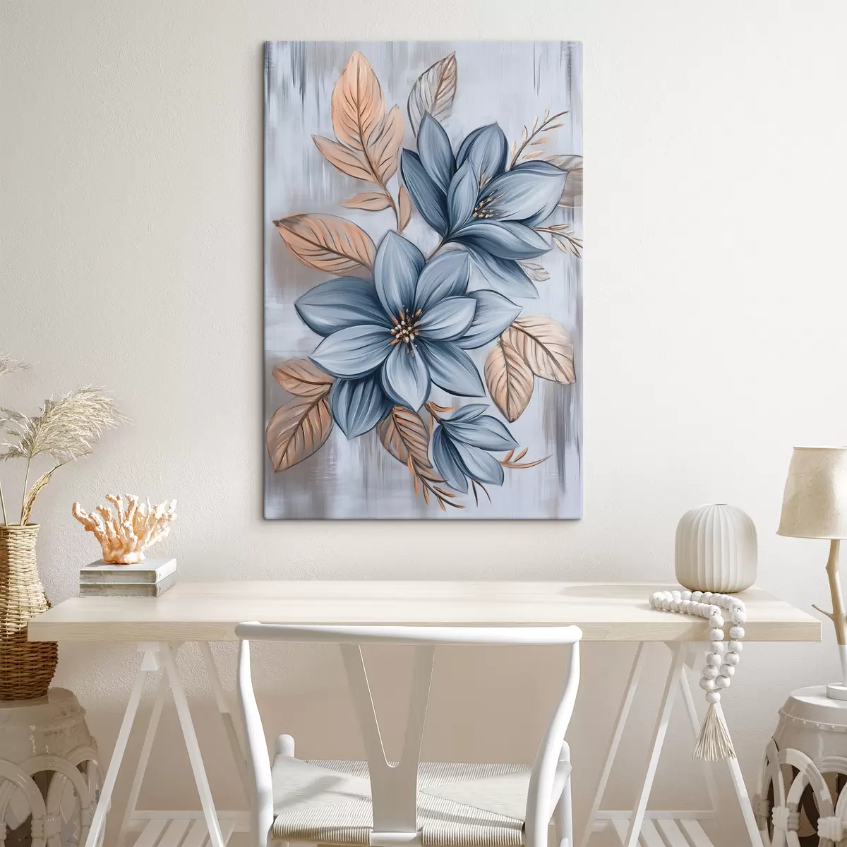 Tableau Fleurs bleues sur fond gris Nr s40453