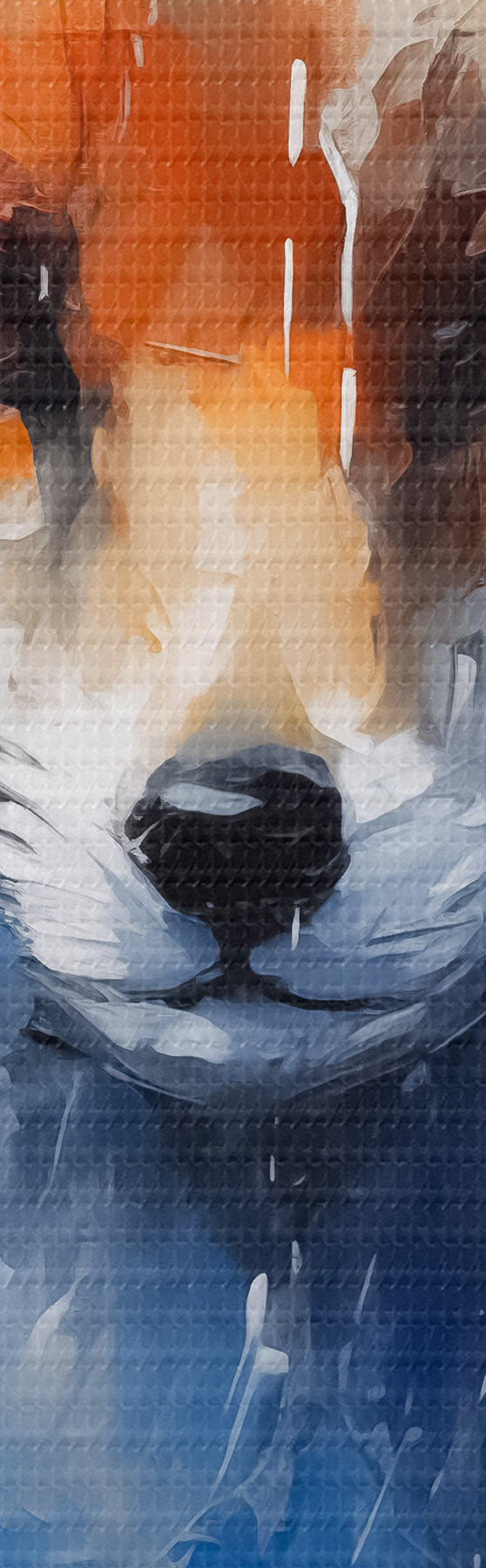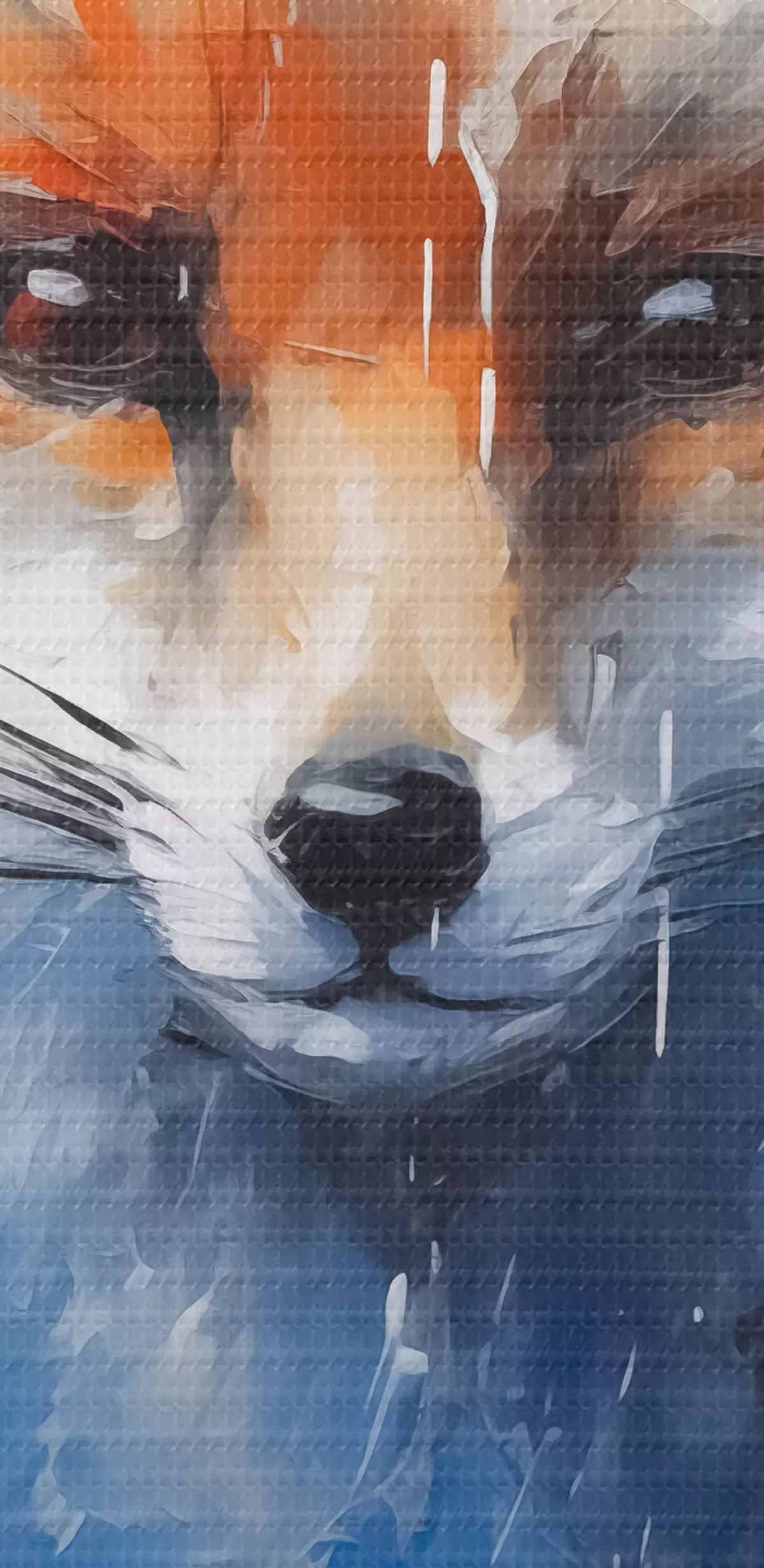 Tableau Portrait abstrait d'un renard avec des taches de peinture bleue s40524