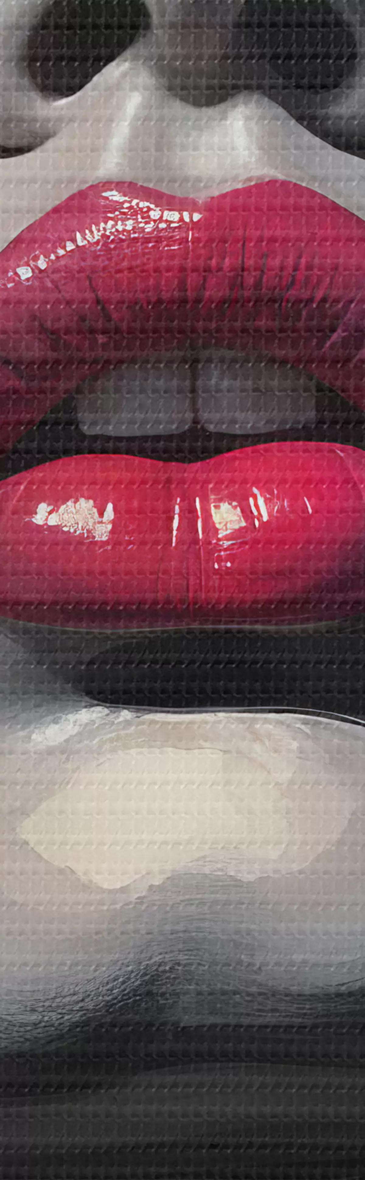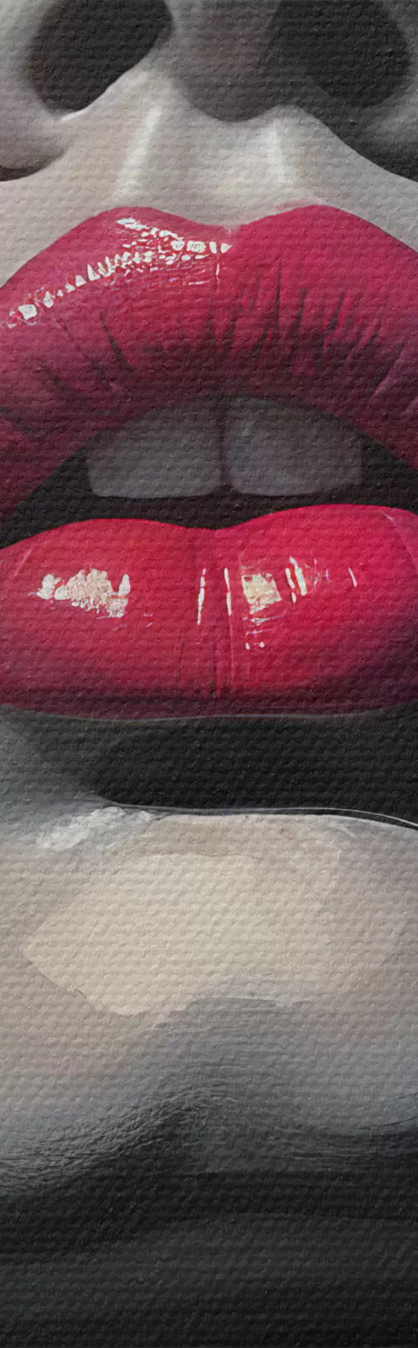 Tableau Portrait abstrait d'une jeune femme portant des lunettes de soleil avec des lèvres roses et des formes abstraites et des touches de rose Nr s40558
