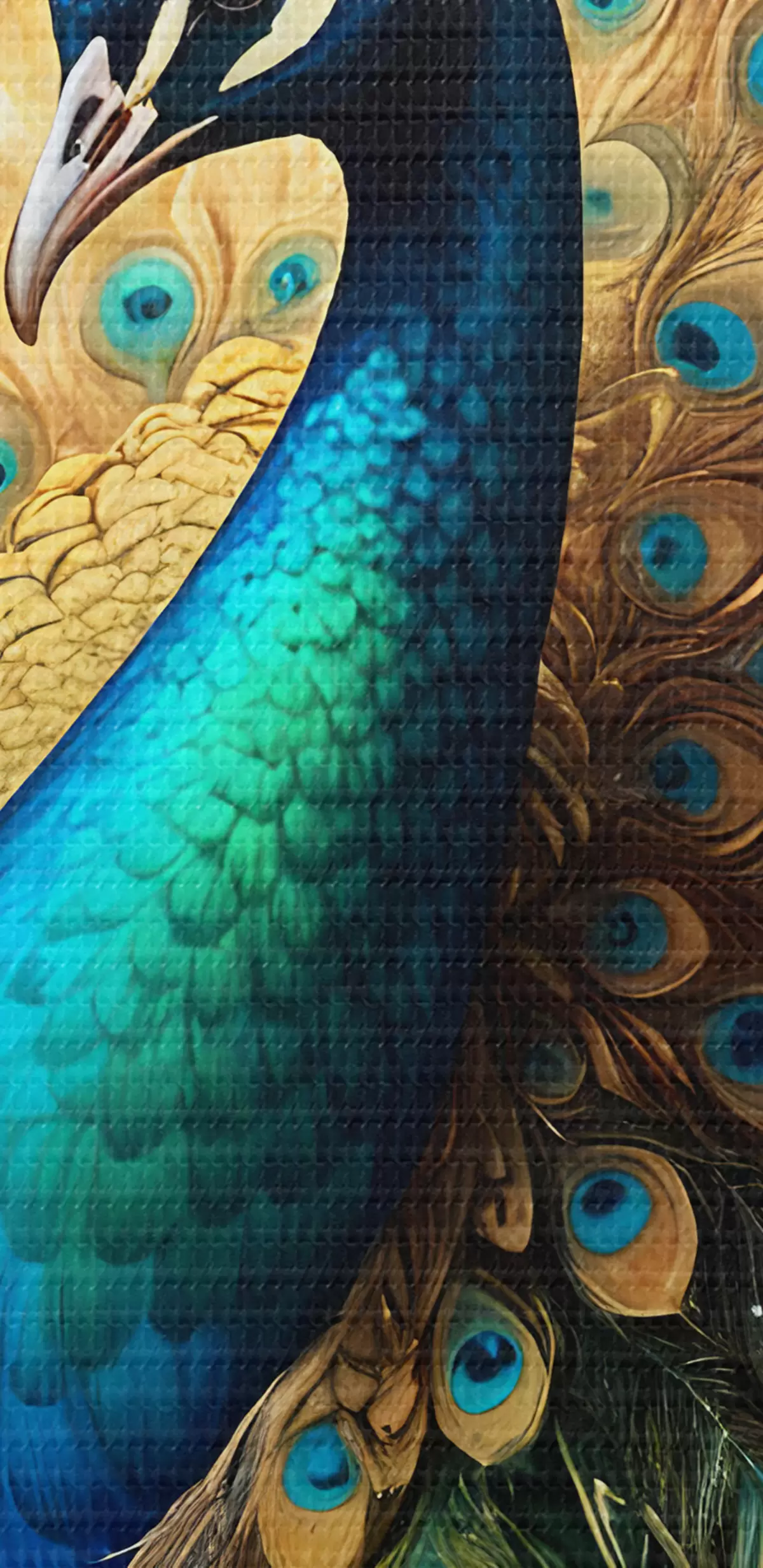 Tableau Un paon vibrant avec ses plumes entièrement déployées, mettant en valeur son superbe plumage bleu, vert et or s40571