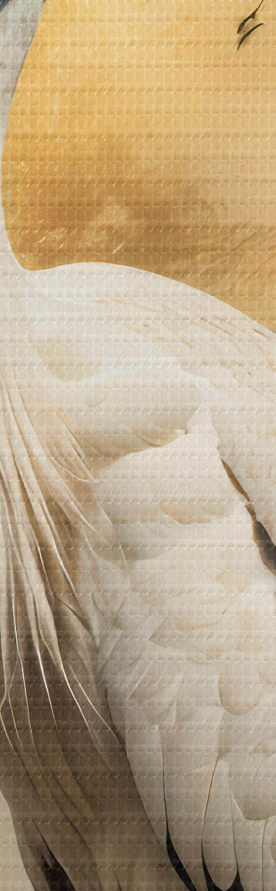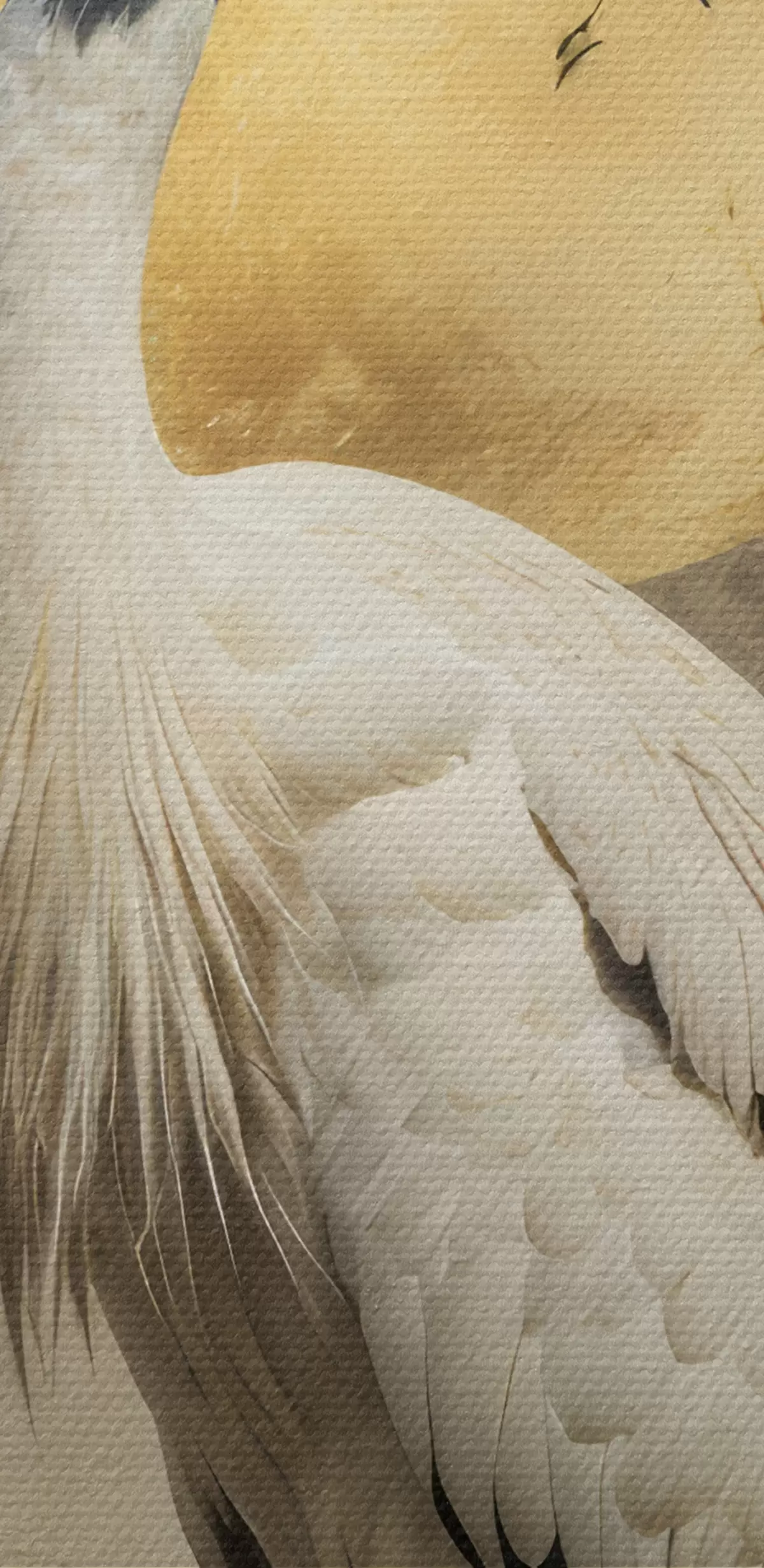 Tableau Une grue grise majestueuse se tenant devant une grande lune pleine, avec un arrière-plan naturel flou Nr s40591