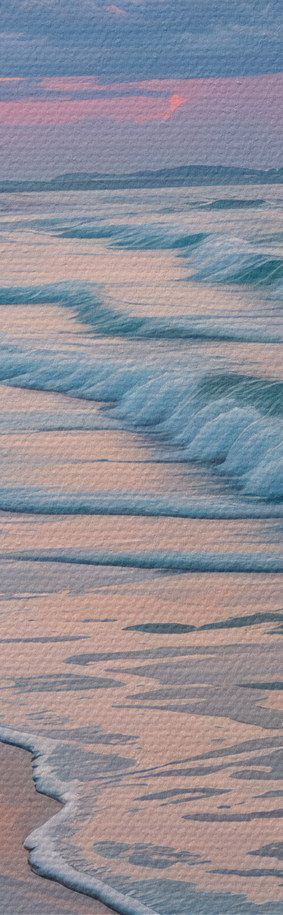 Tableau Une scène de plage sereine au coucher du soleil, avec de douces vagues s'échouant sur le rivage sablonneux Nr s40606