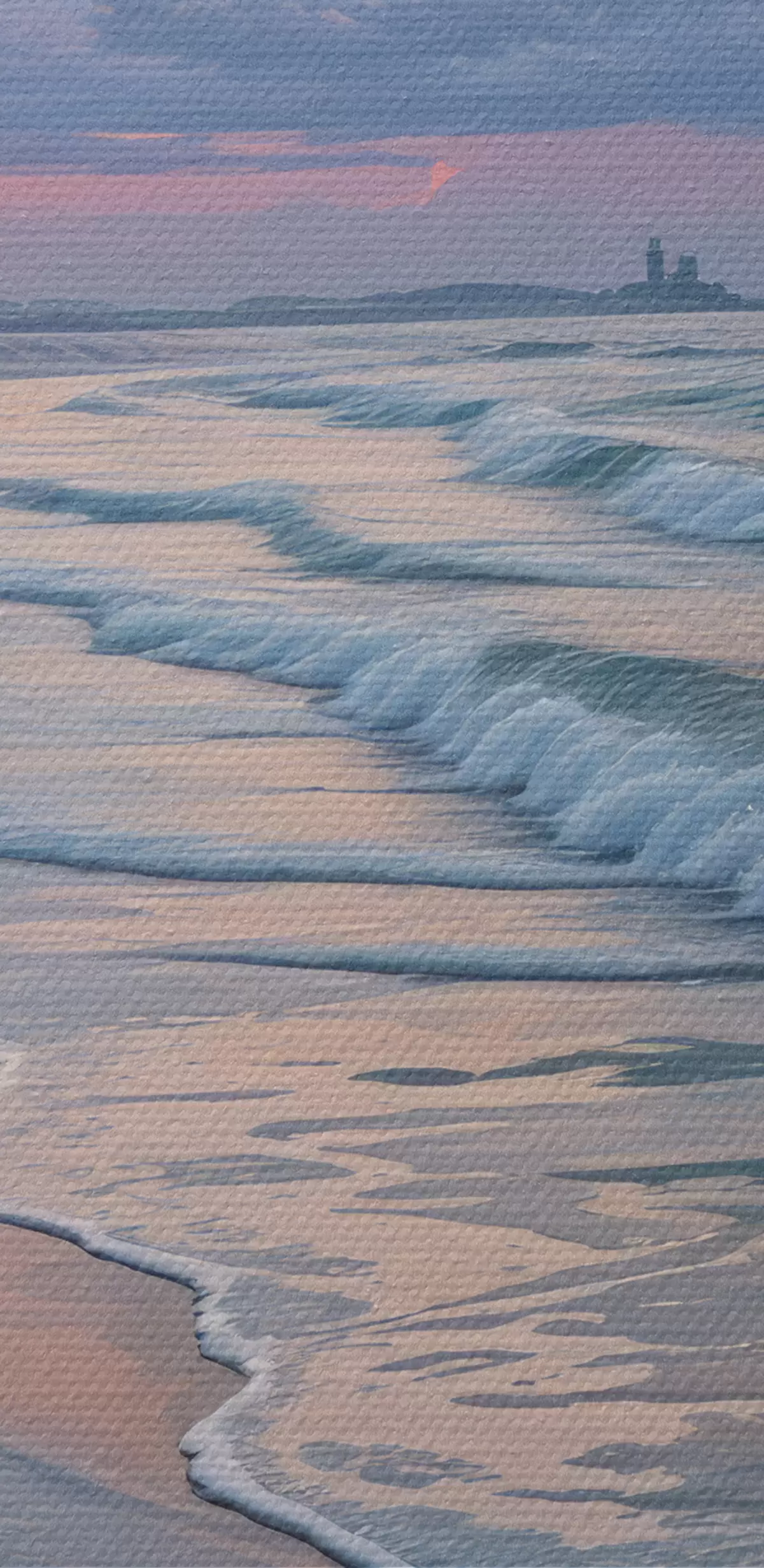 Tableau Une scène de plage sereine au coucher du soleil, avec de douces vagues s'échouant sur le rivage sablonneux Nr s40606