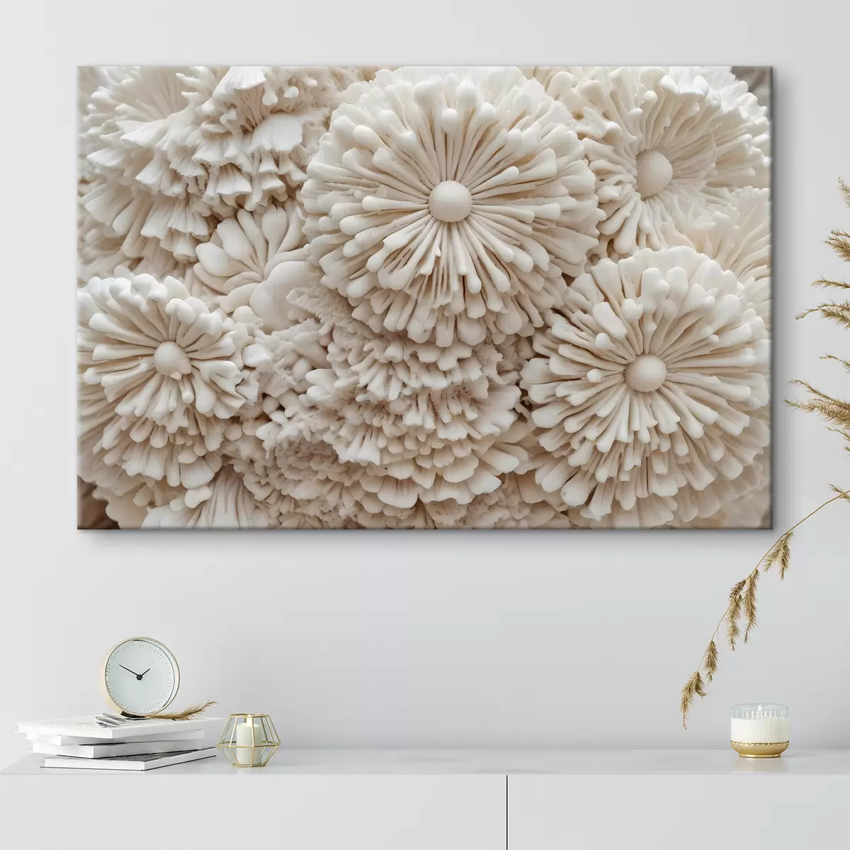 Tableau Vue rapprochée d'une grappe de structures délicates de couleur crème ressemblant à du corail, créant un imprimé à la texture douce Nr s40614