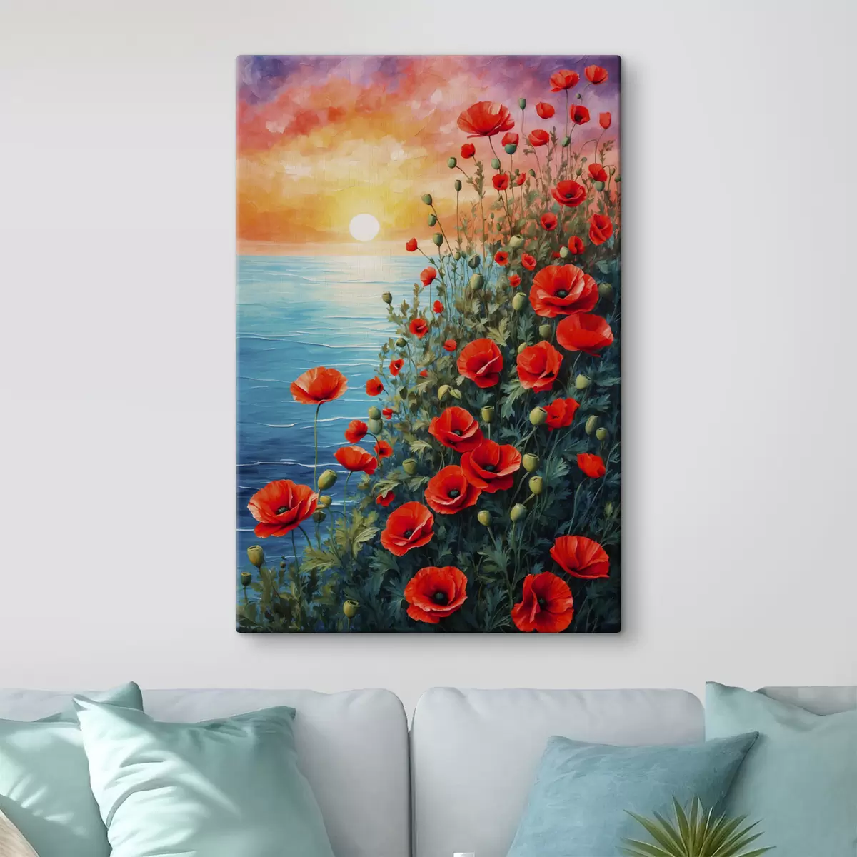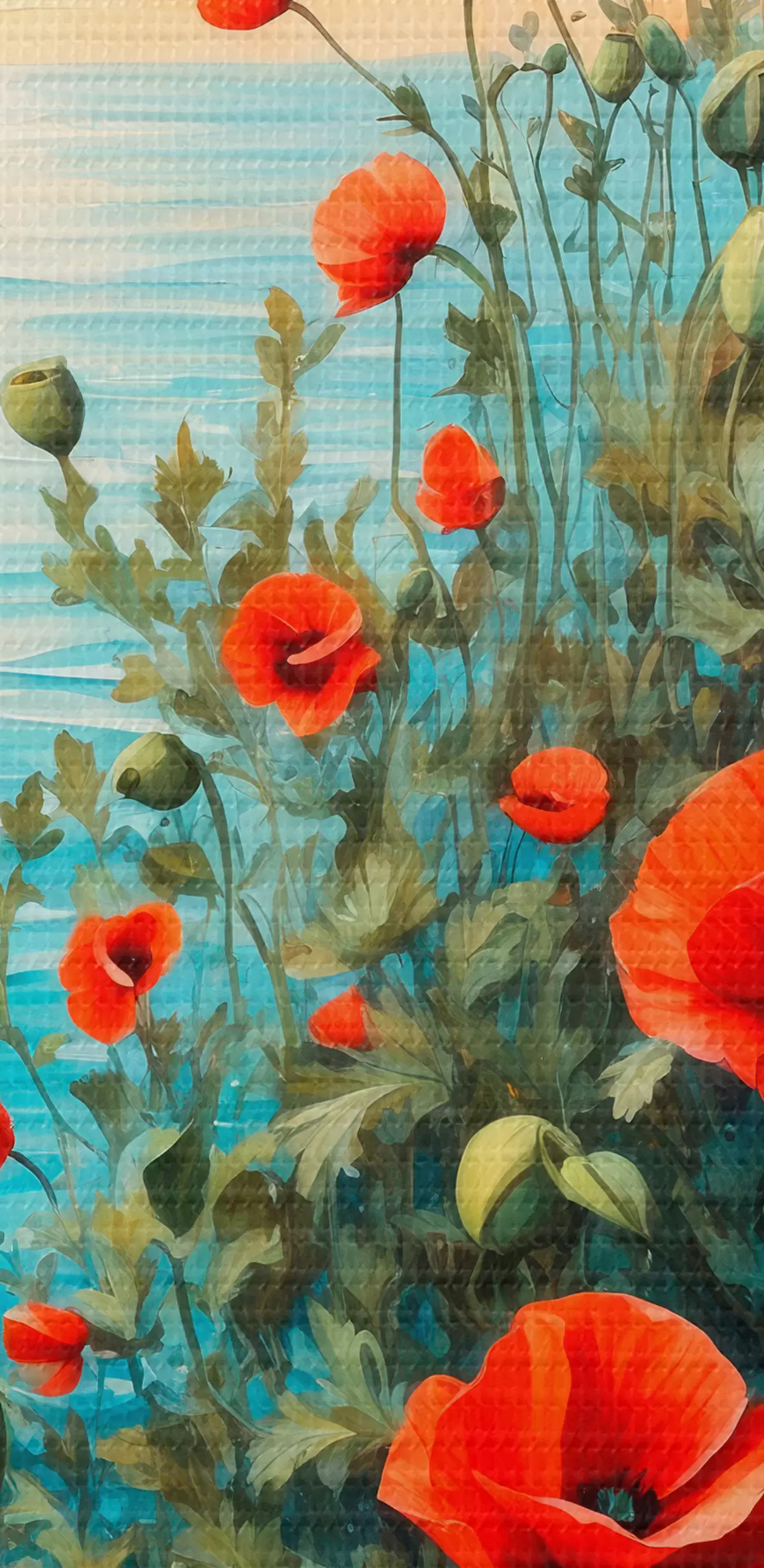Tableau Coquelicots en fleurs sur fond de mer Nr s40637