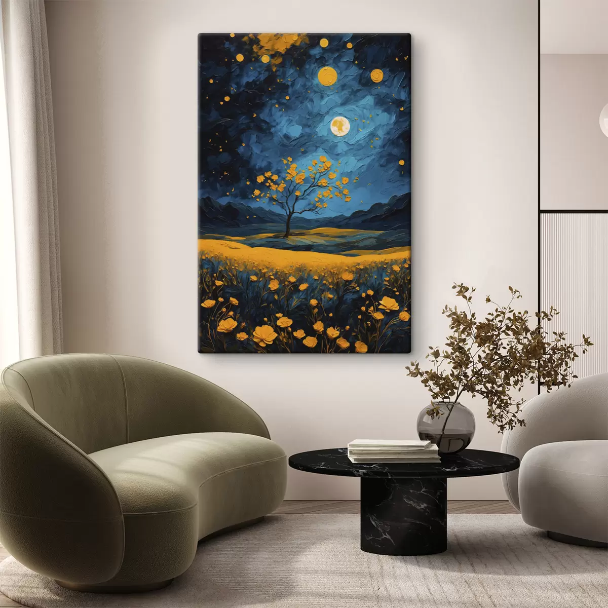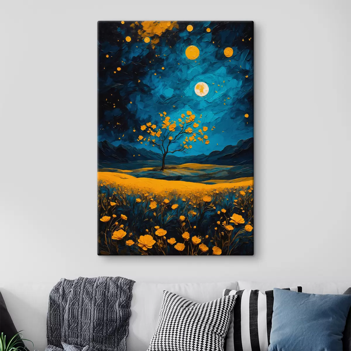 Tableau Champ de fleurs jaunes la nuit s40643