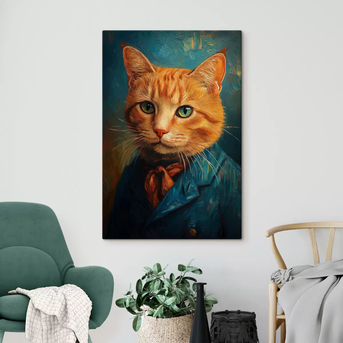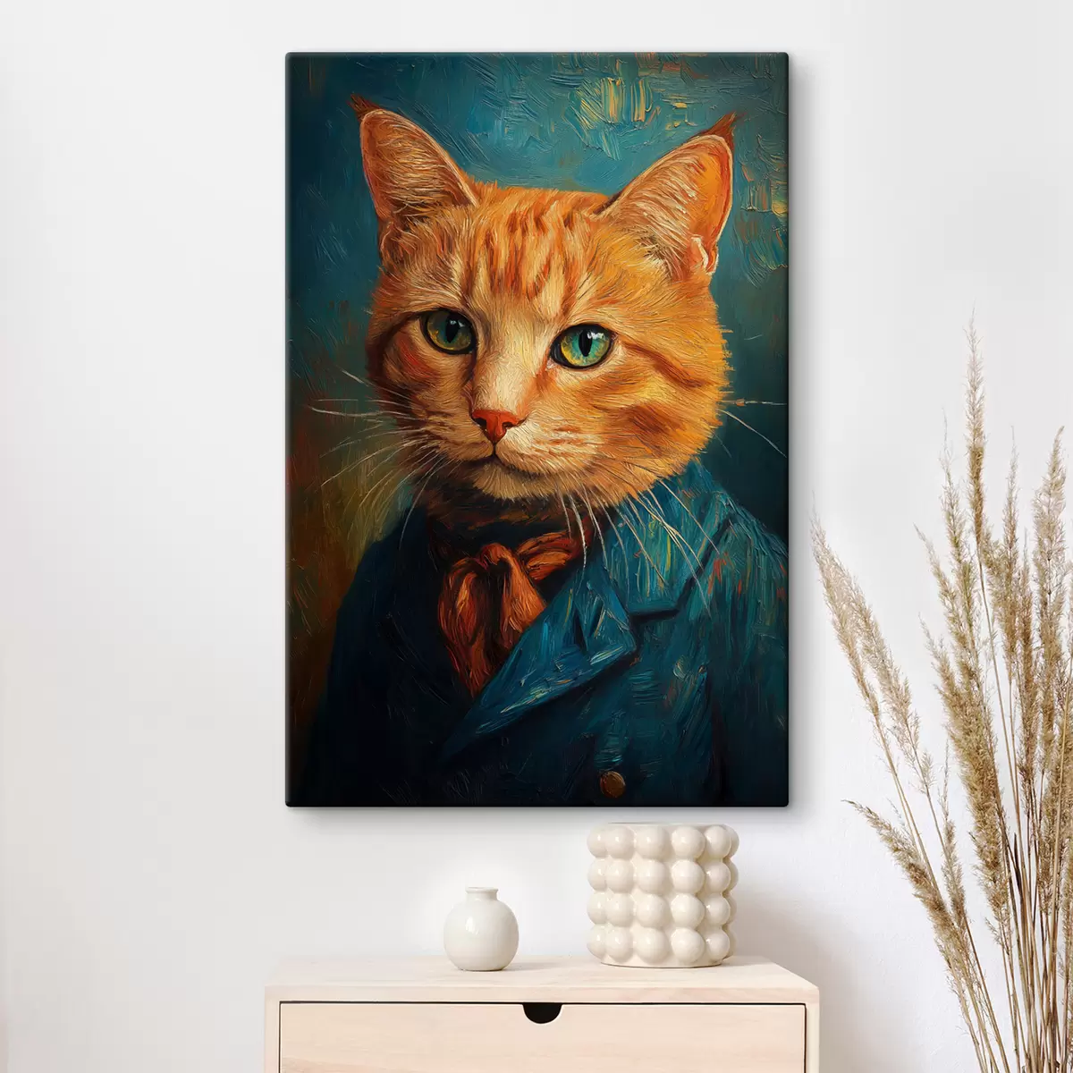 Tableau Chat roux en costume dans le style d'un portrait de Van Gogh s40647