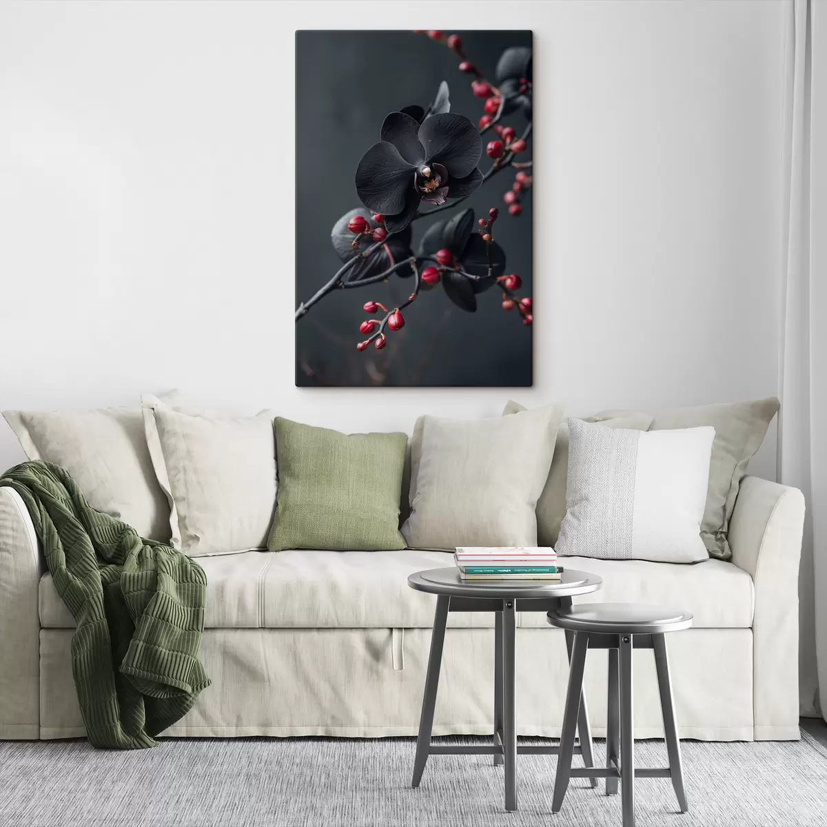 Tableau Arrangement floral élégant d'orchidées noires s40663
