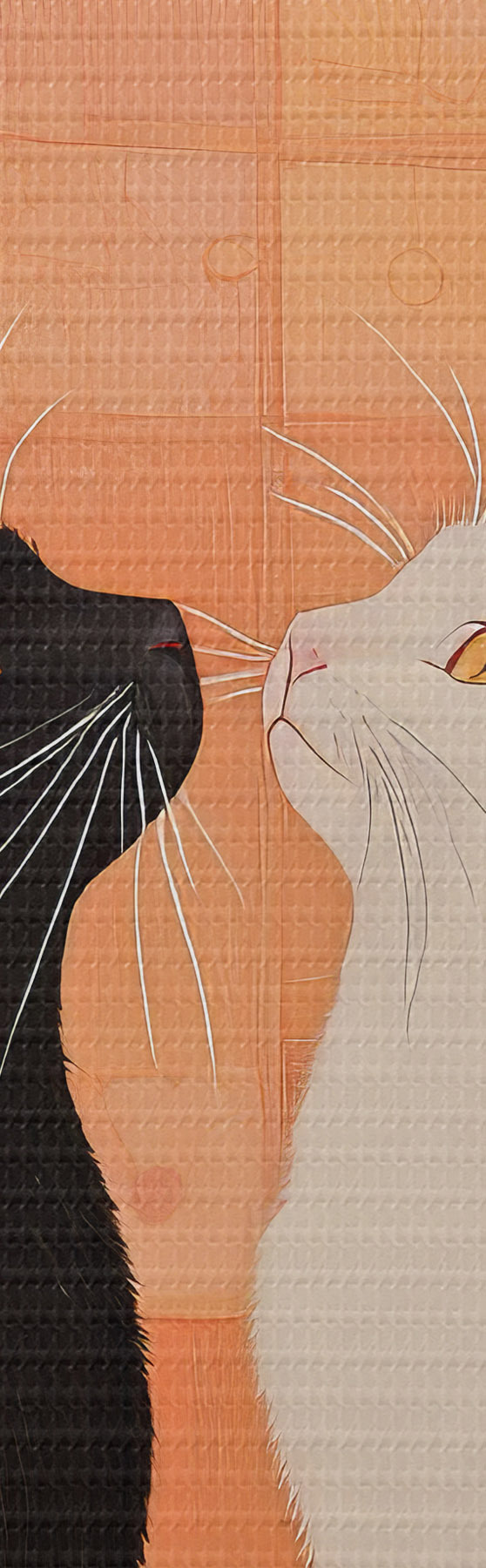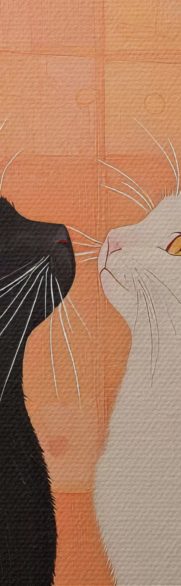 Tableau Chat noir et chat blanc se regardant mutuellement au coucher du soleil Nr s40669
